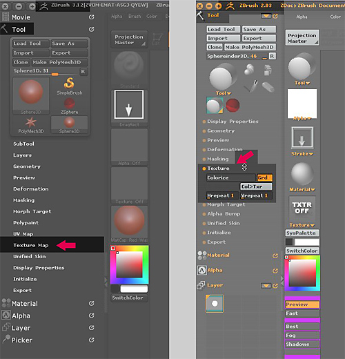 I cant find the funktion Texture by Tool in my ZBrush 3.12. It is only Texture Map there. Where is it in ZB 3.12? I missing the Tool: Texture: Txr>Clr.