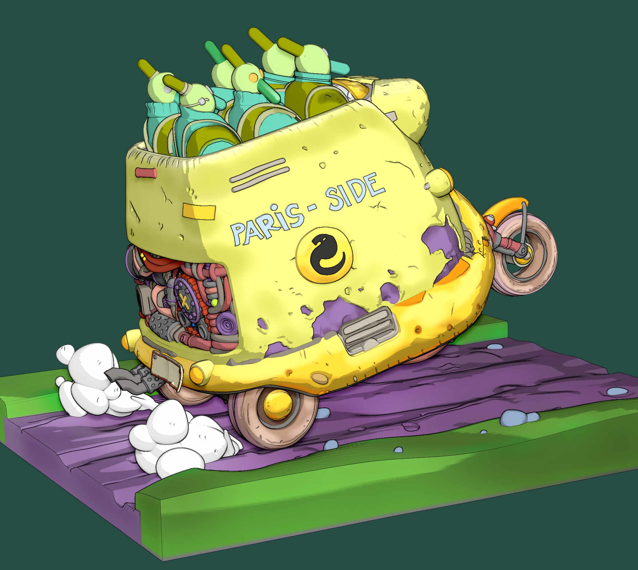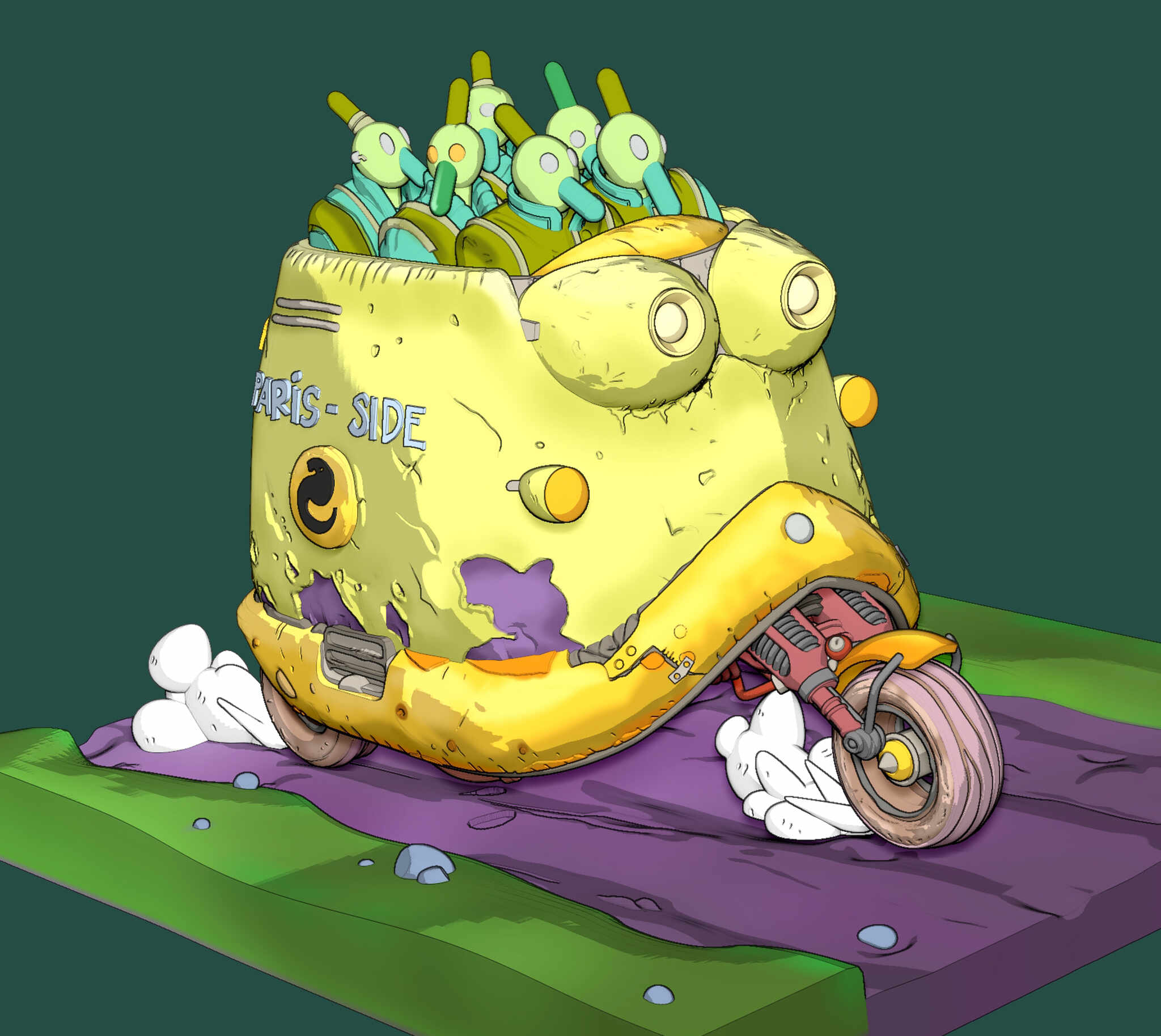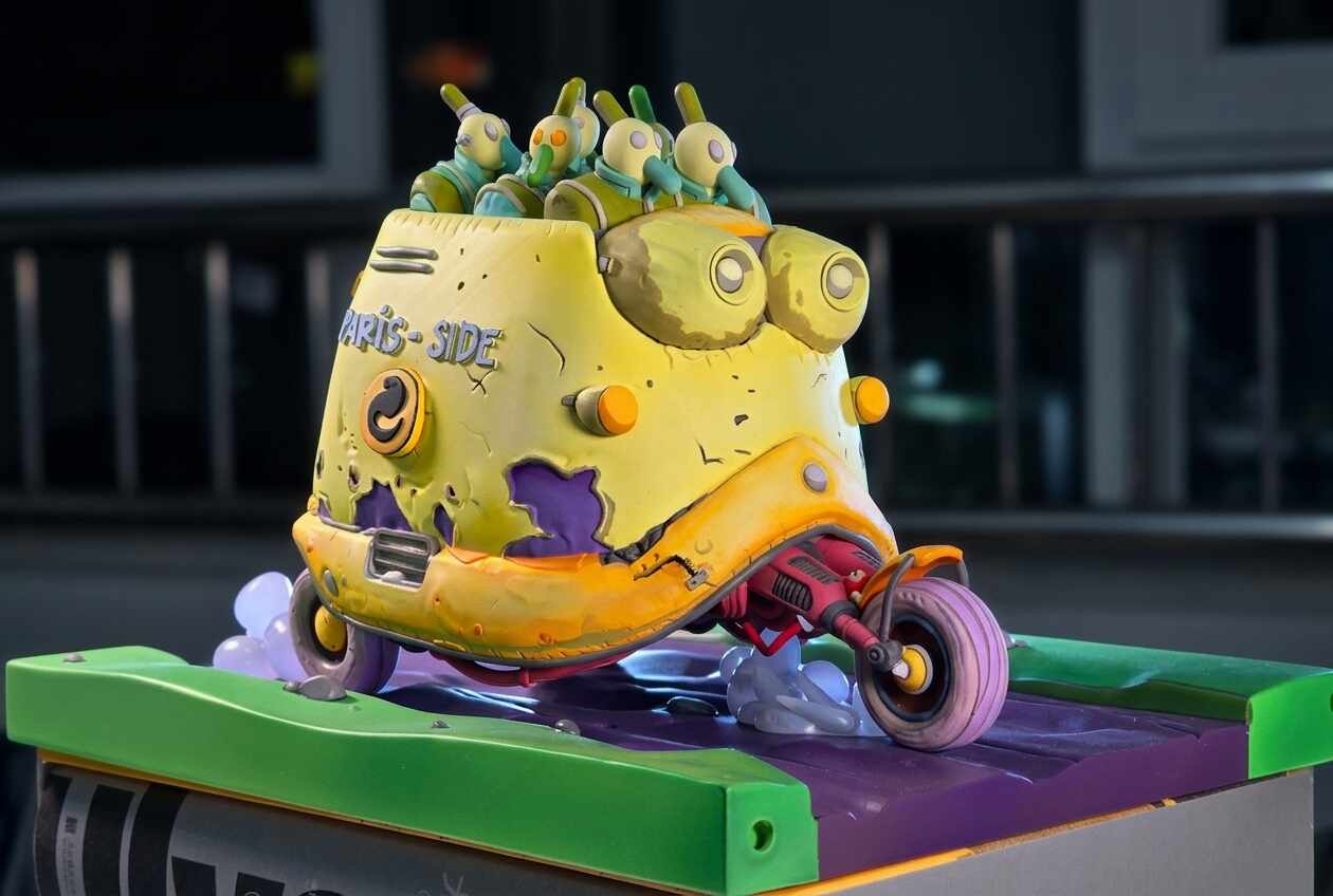The challenge was not only to preserve the charm and humor of the original Paris-Side scooter, but also to reinterpret it as a physically printable object with believable structure, clean separations, and paint-friendly surface design.
