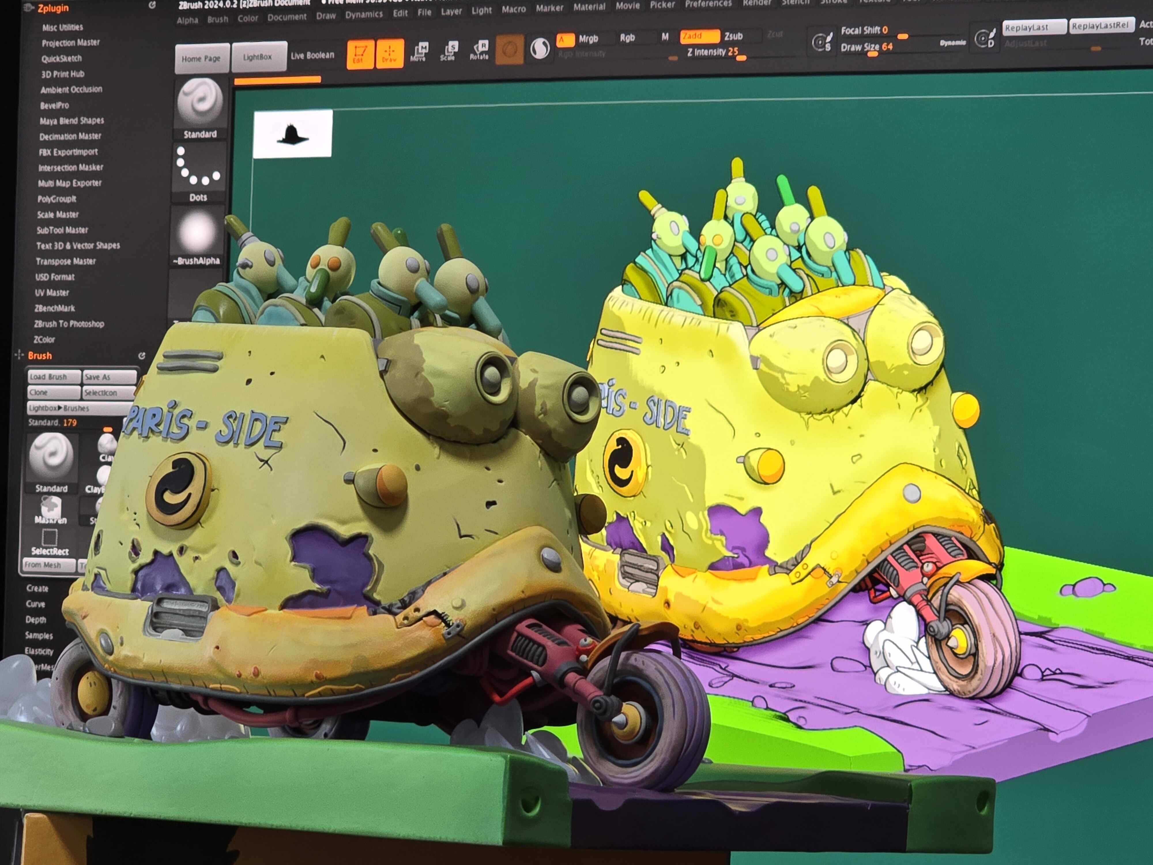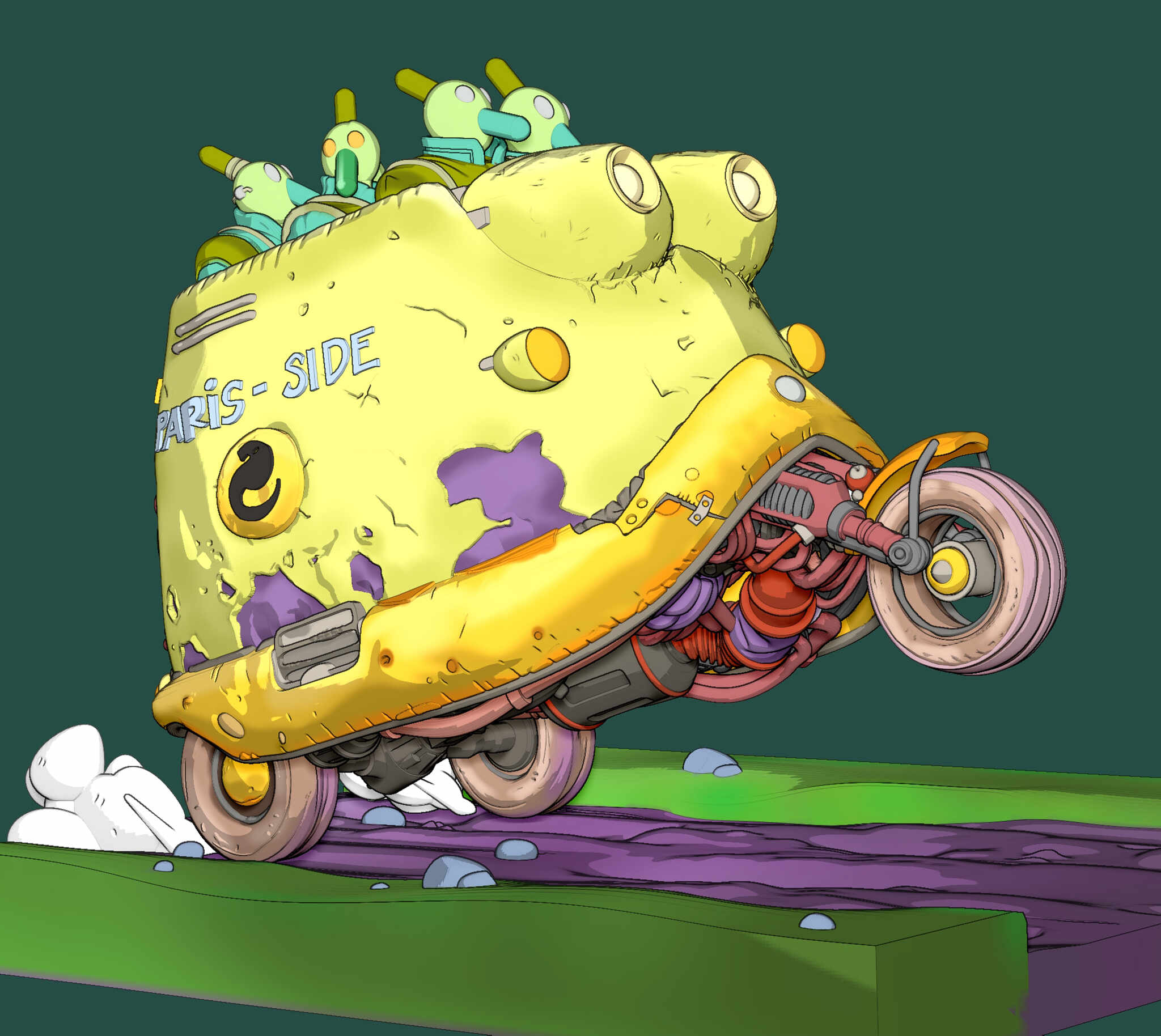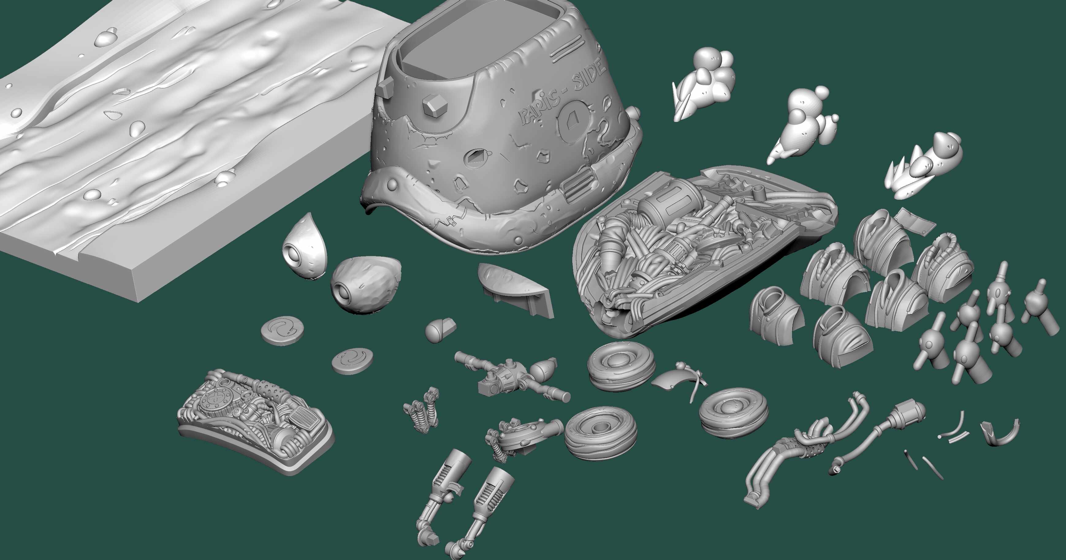 The challenge was not only to preserve the charm and humor of the original Paris-Side scooter, but also to reinterpret it as a physically printable object with believable structure, clean separations, and paint-friendly surface design.
