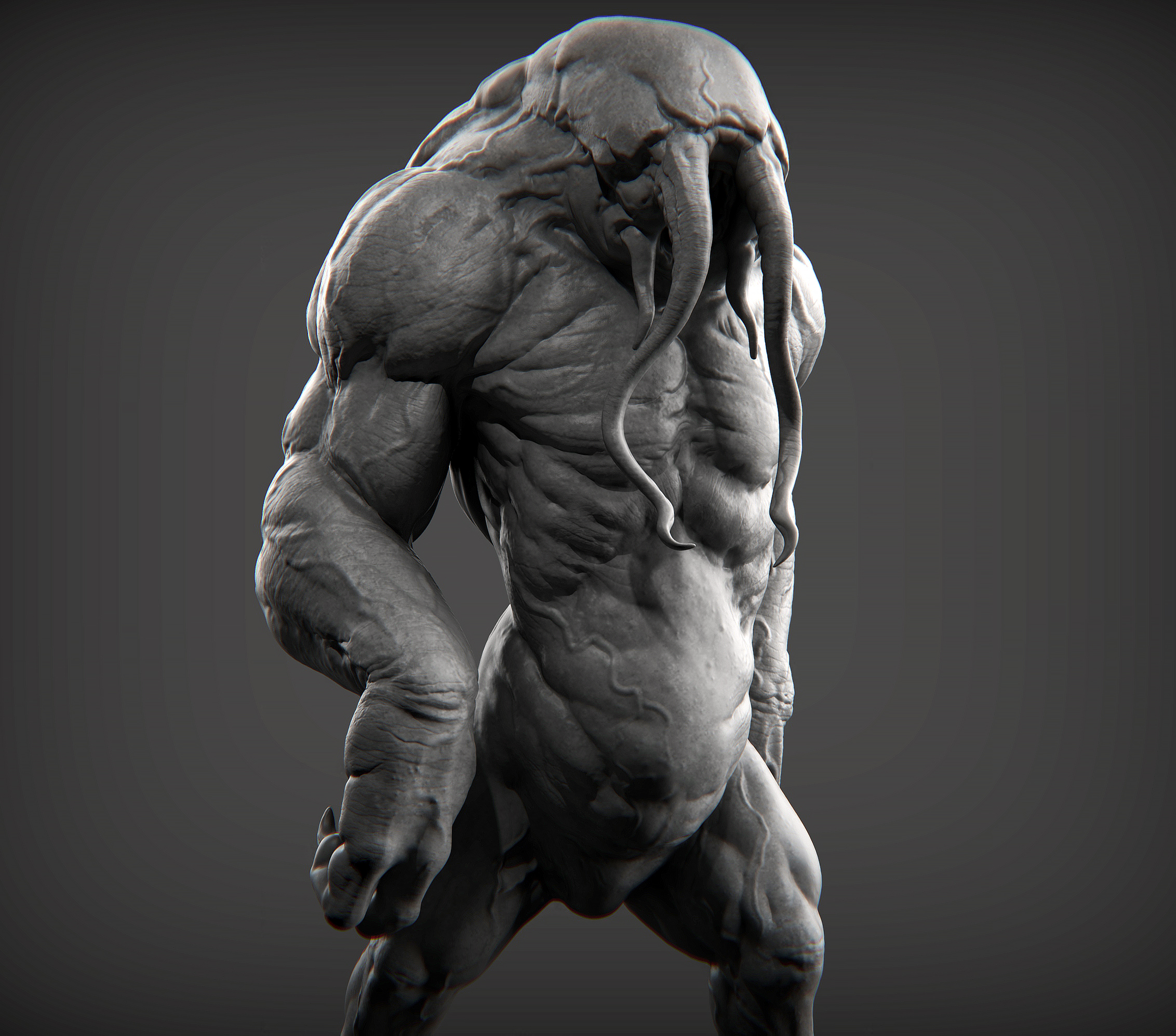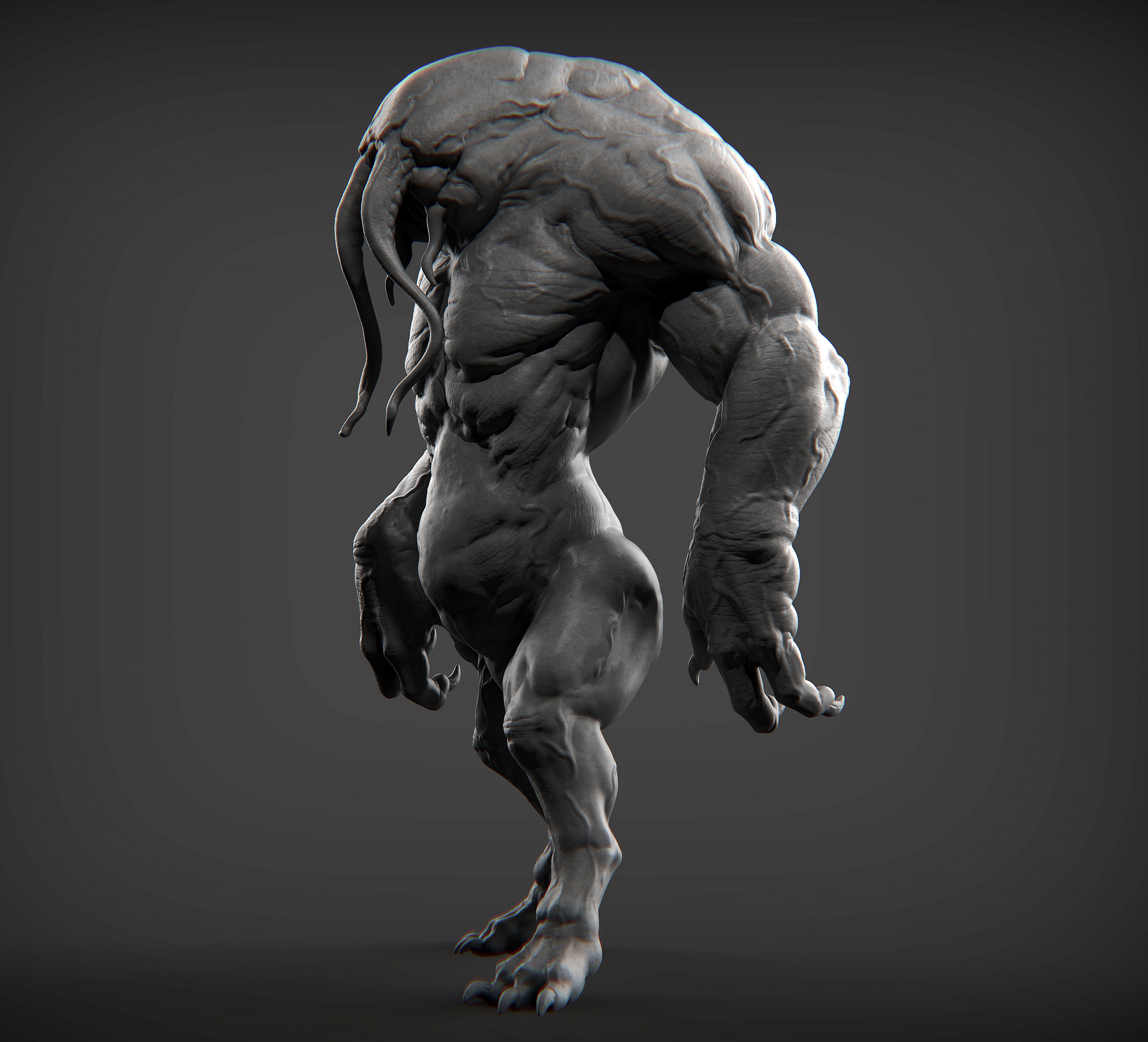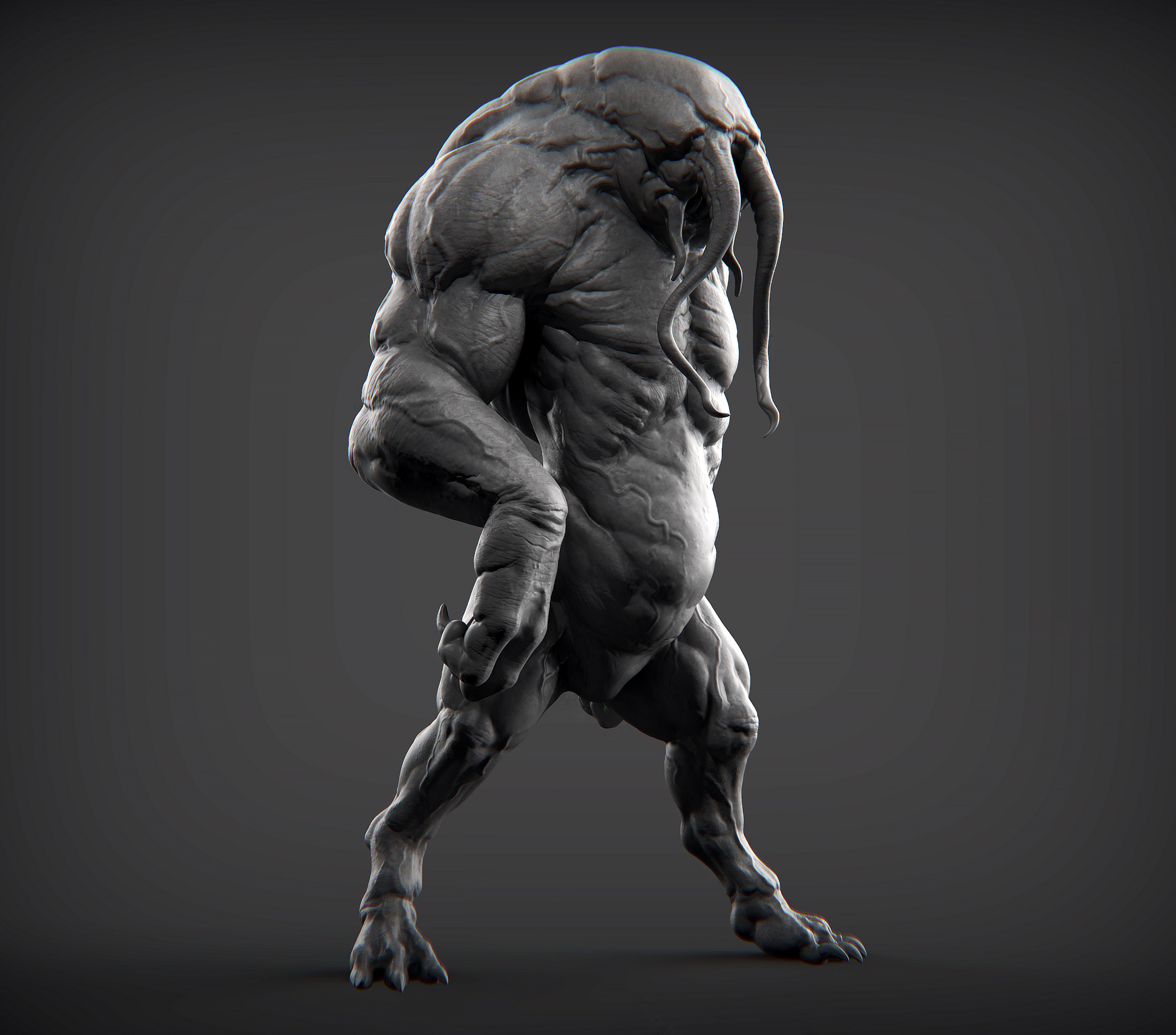 hey guys,this is a quick sculpt based on a 2D concept art by sebastian luca that i did last night before sleep,that was fun to sculpt this creature actually i changed some parts of his concept and added some extra details to this creature to made it more realistic and muscular monster,i hope you enjoy of this design .