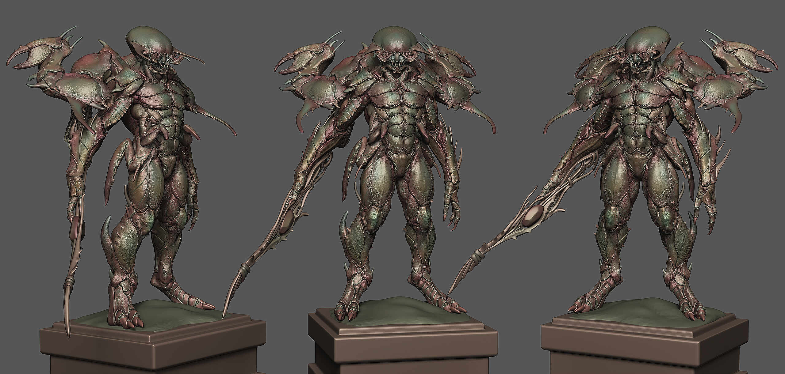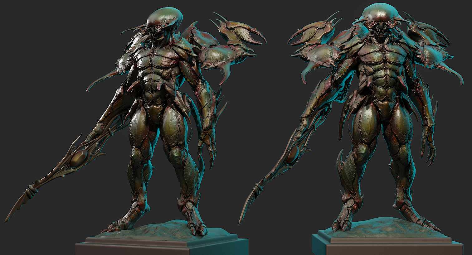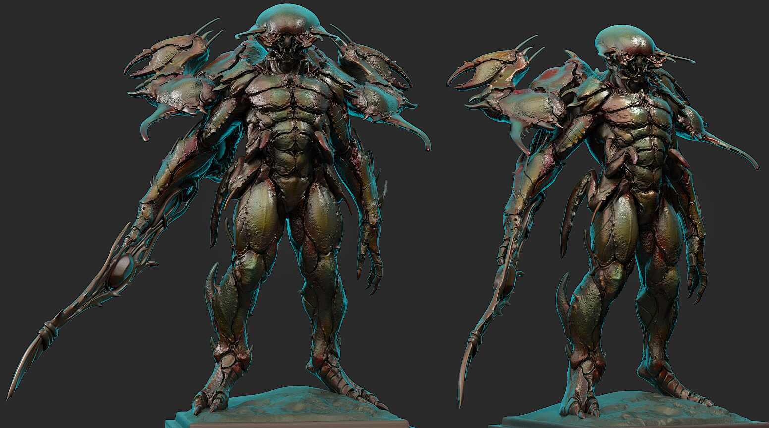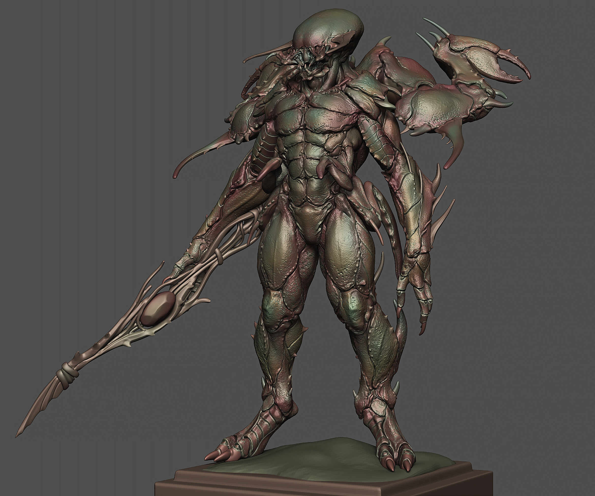 Hey everyone, I just wrapped up the design for my latest creature yesterday, and I’m excited to finally share it with you all. Meet Morvar . Designing this beast was an incredibly fun challenge, especially pushing the blend of insectoid and crustacean anatomy while maintaining a formidable, grounded silhouette. Figuring out the overlapping plates of the carapace and giving it that iridescent, beetle like finish was one of my favorite parts of the process.