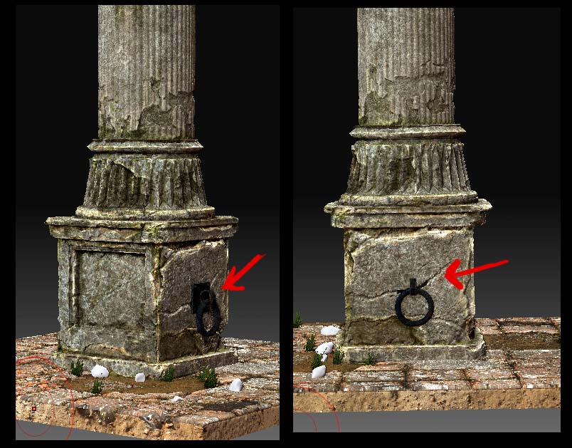The last subtool is a debris layer (small polygons objects over a surface) from the maya scene. So I have a ground, I import the debris object as subtool and If I look from side or front view its ok (in zbrush), but if I try to move the camera to see it from above, the obects go behind the ground (its like rotating the camera cause them to really go under the ground).