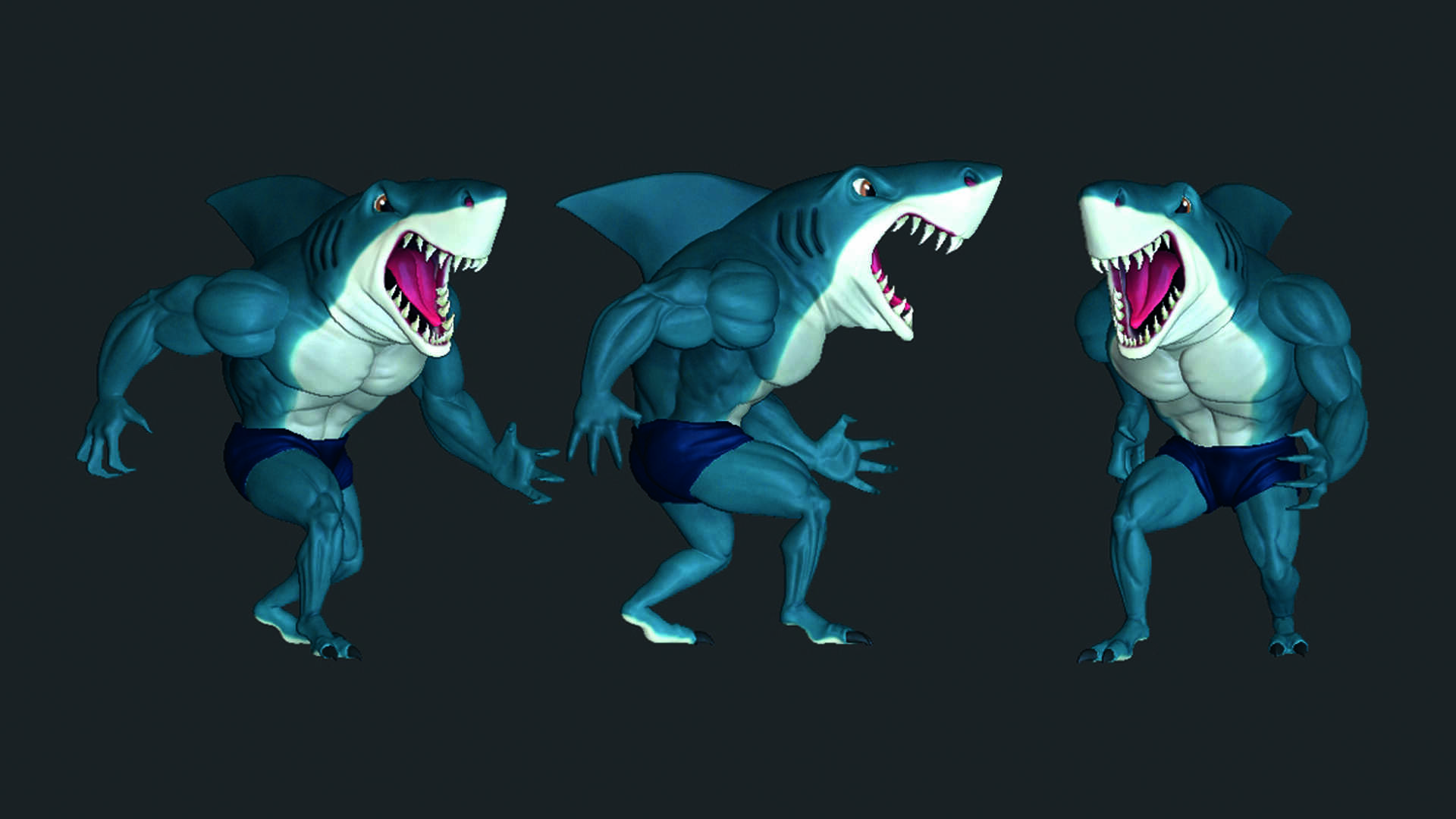 This is a job requested by my son. The briefing was: ‘Make a muscular, angry shark wearing shorts and sneakers.’ But i forgot the tennis