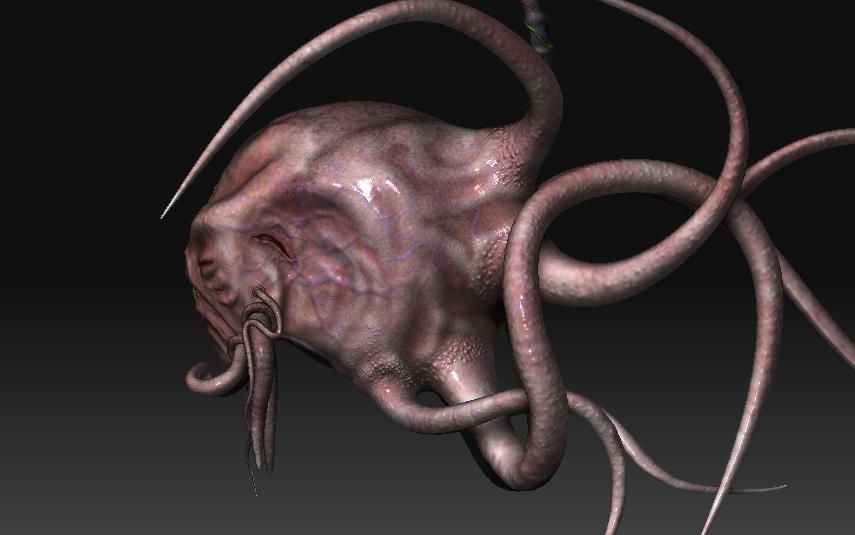 the main reason iv added so many pollys is so the lighting on the skin is consistant, sence the tenticles on the jawl line are seperate sub tools, i didnt want the lighting and textures to look different then the actual head. and the head has so many poly’s because of the face, at the time i didnt know how to only subdivide one area. if i could go back now i would have done so…but i cant. i wish there were a poly reducer for blender, it would come in hany right about now.