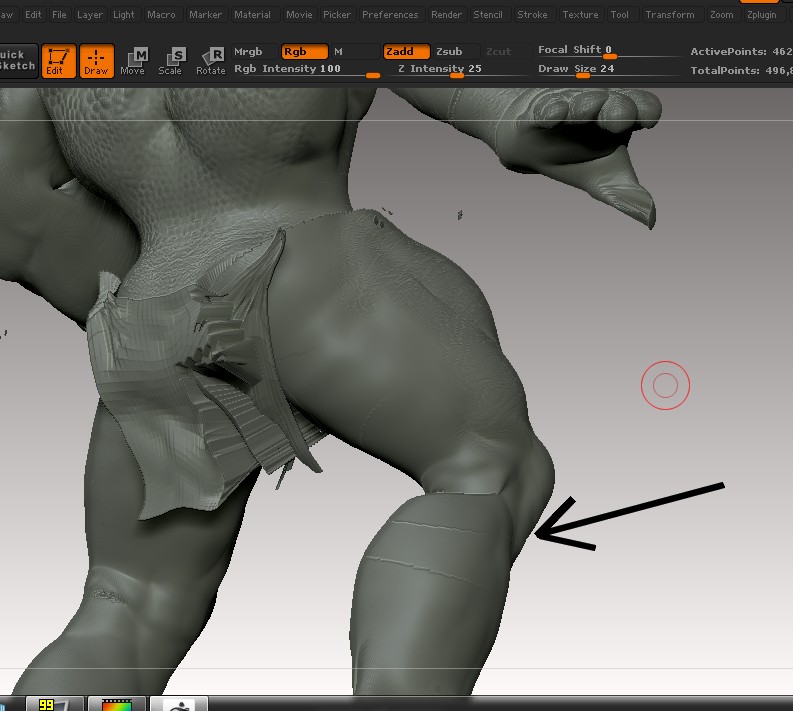 I don’t know, I’ve not seen this before. Perhaps you should try posing him using just Transpose rather than ZSphere rigging, in case it’s something to do with the rig. (You could also try pressing TPose>SubT without any posing to see if you get the same problem.)