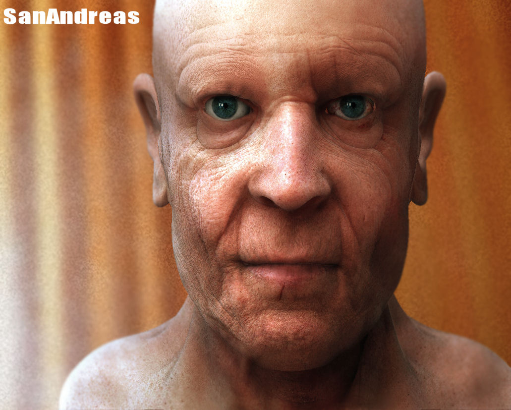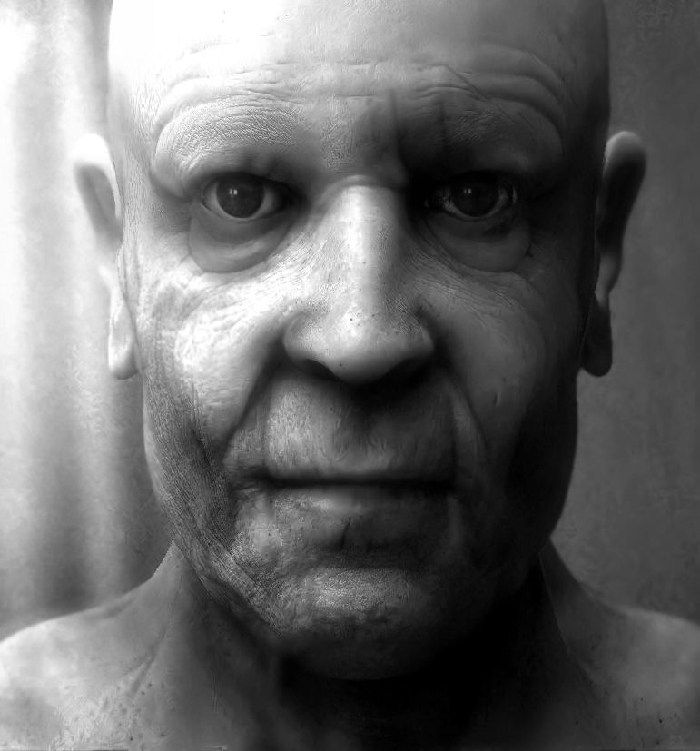 Well done modeling and skin. I noticed all the little details like the small cut under his chin and the one bloodshot eye.