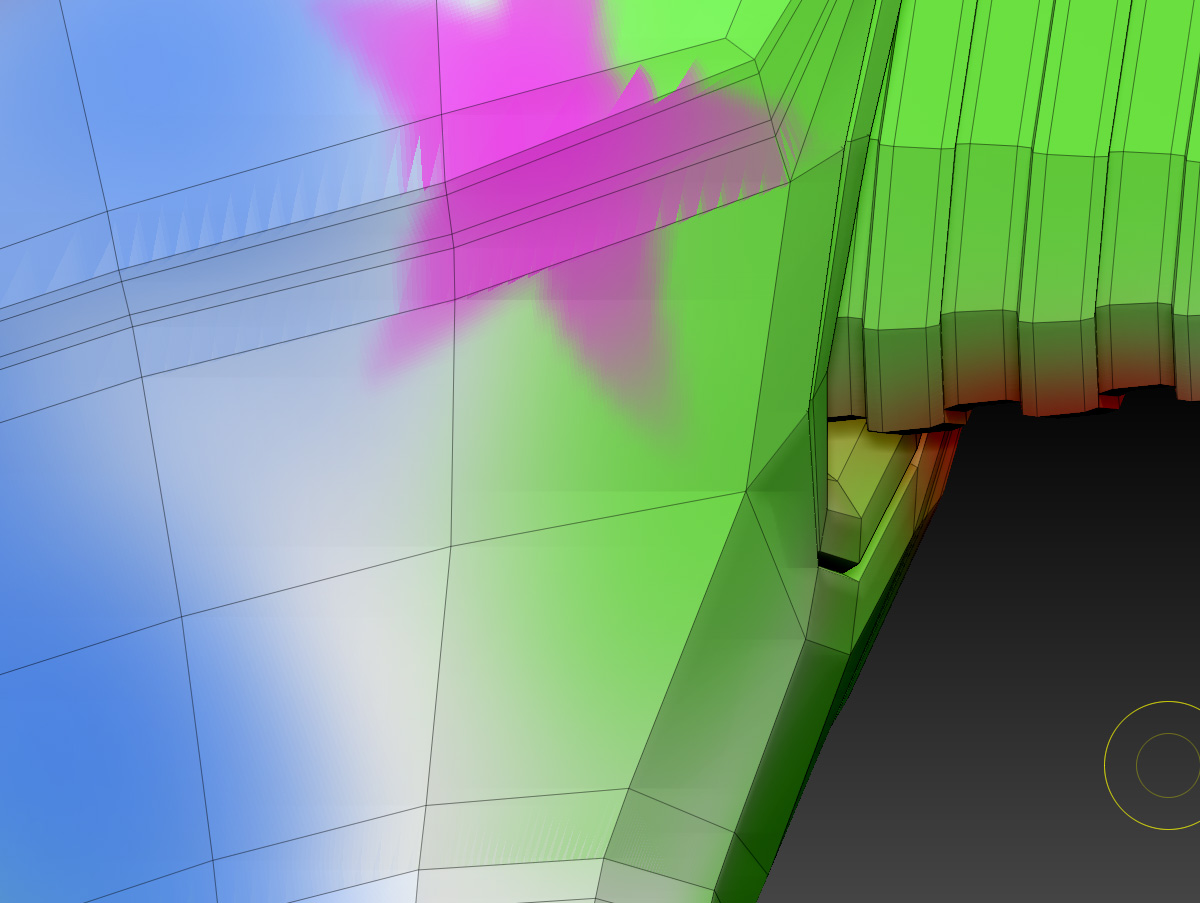 So, model was made in ZB, than exported as OBJ and edited inside Modo (adding edge bevels and so on). After I’ve exported OBJ from Modo I made UV’s inside ZBrush with UV master. Everything worked OK… no polys overlaping and such stuff. I did Polypainting on a model with more than 18 mil polygons. When I hit “New From Polypaint” inside “Texture Map” menu I get problems wherever there is a sharp edge (as you can see on the image). This is the first time that something like this has happened. Please help.