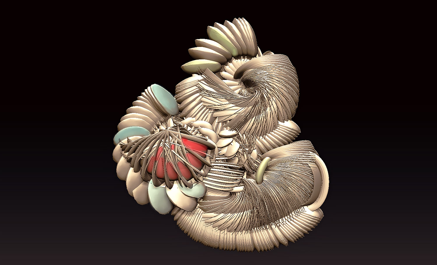 Isn’t it peculiar how I’ve used ZBrush for years but when I look at each one I have no idea how you did it. I could kinda sorta guess but nothing definitive. What’s lovely about working this way is that it can never be repeated. I’ve always been interested in ZBrush as a visual synthesizer and this work exemplifies it.