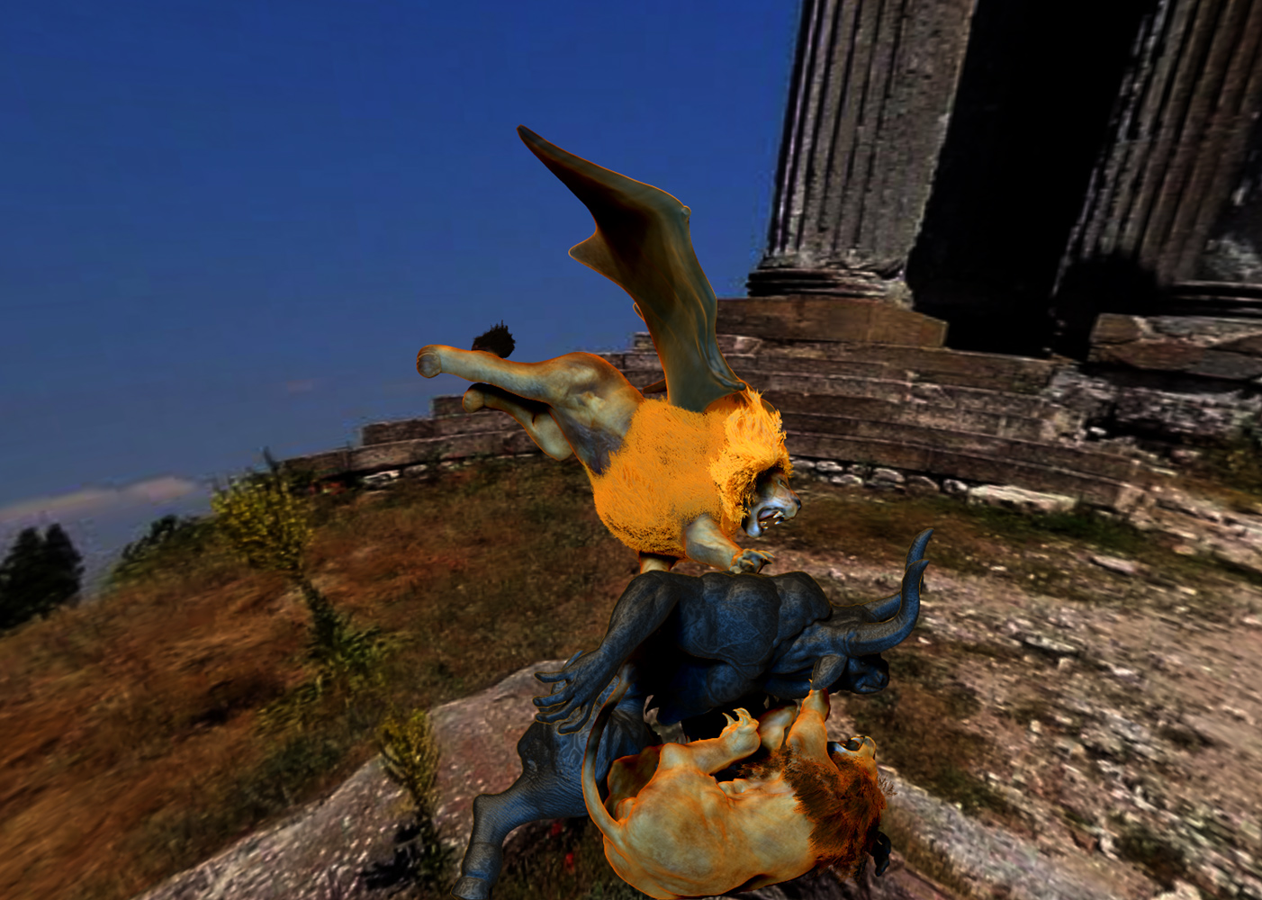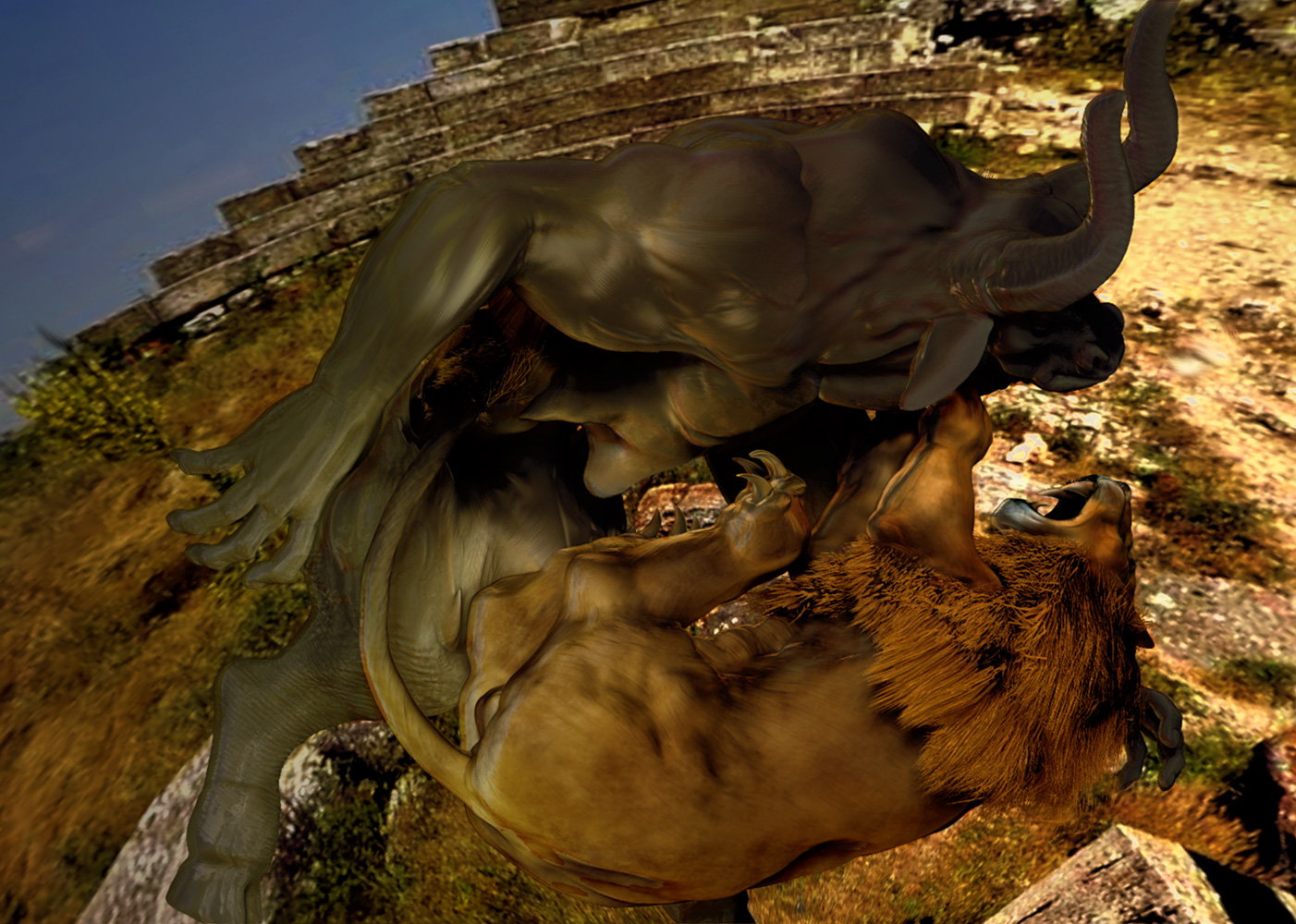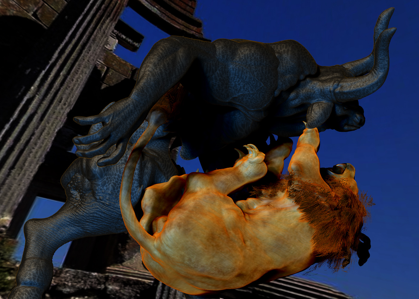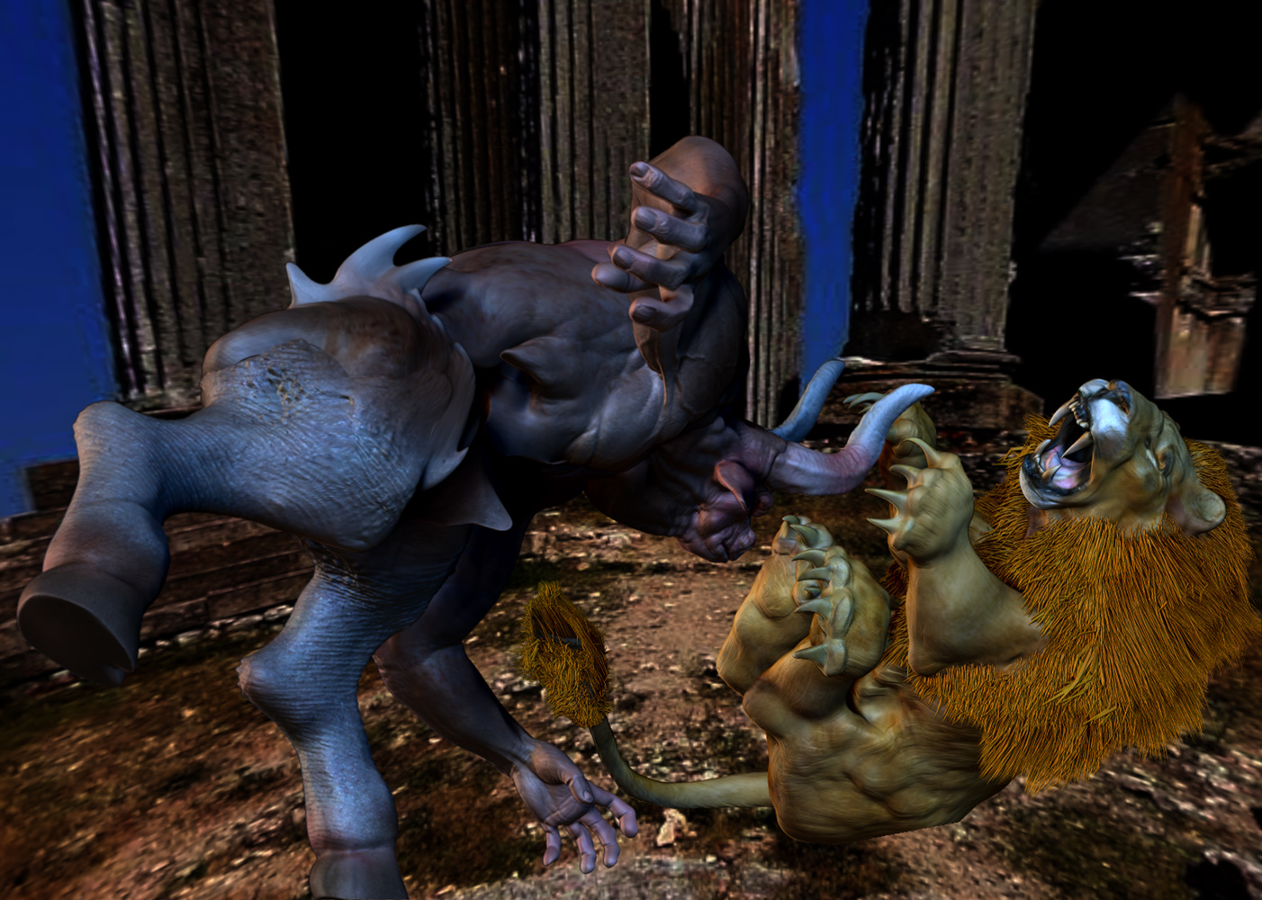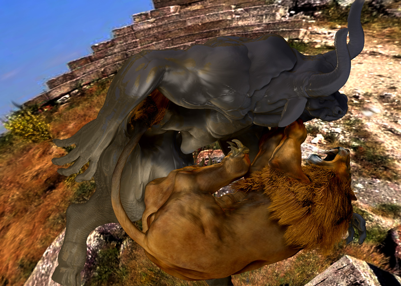 yes, glenn, i feel that way sometimes too, bored of static poses… but here is a challenge, why not try to make this scene, good start btw, the most dynamic without even showing blood and hurts? i mean, suggest it, if it is neccesary for your statement, but not show it… to me, that way the statement would be stronger… just a thought… happy exploring the possiblities i wish you,