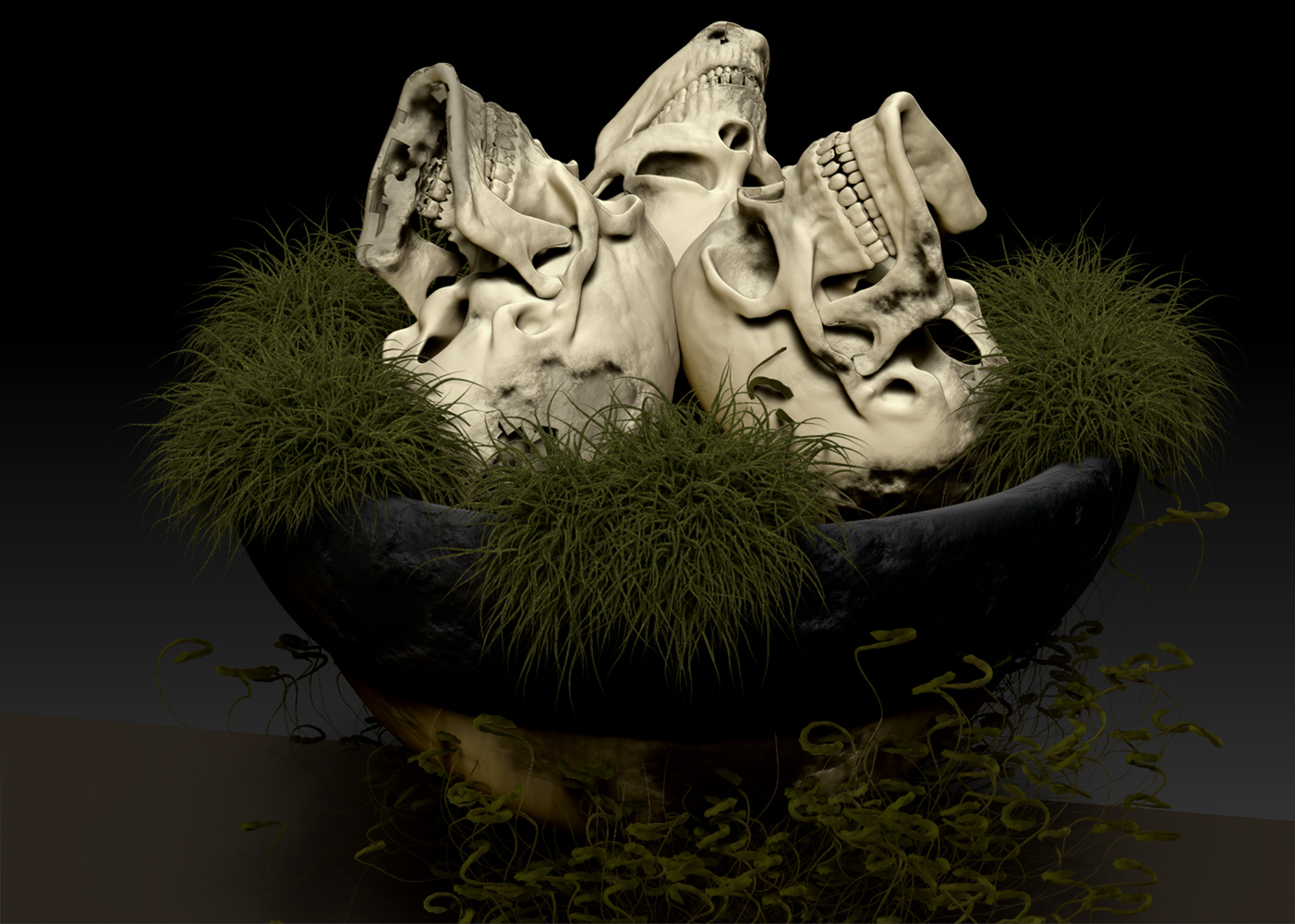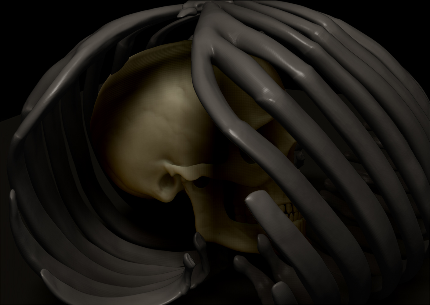 I’m still trying to get a grip on the ZBrush program myself and having a ball in the process…using the bones in my pieces mainly to study material combinations, lighting,and composition.