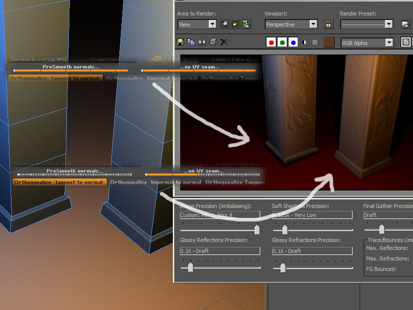 So I’m sharing the lesson of the day: One of the following sliders has big influence on how normal maps look in sharp corners, didn’t have the time to figure out which one, but here’s the settings file, change filetype to .zmp