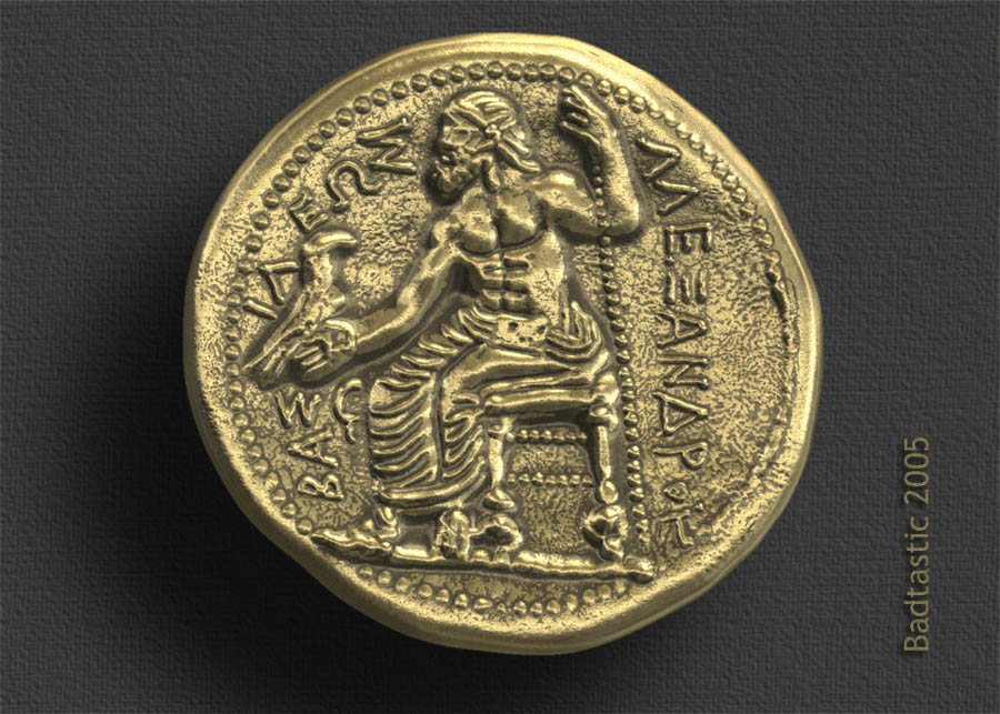 The Zbrushed version is by no means an exact copy of the original (if you look closely, you’ll see a whole bunch of discrepancies) However, one can get away with a lot because coins of this period weren’t identical to one and other or minted as consistently as modern day coins (were one could immediately spot an inaccuracy) Because of this, modelling these types of objects serve as a rather fun exercise.