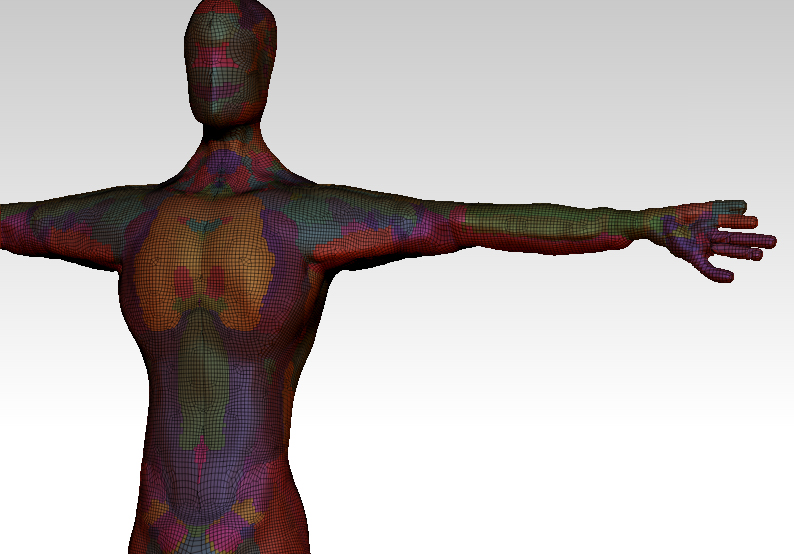 i changed the background to try to make it more easy to see. Here you have all the pollygroups, that i deleted (i don’t remember why, but i think i tried to remesh the model to try to fix the problem, and that deleted the polygroups), and as you can see the fingers don’t look very good, but is for the resolution of the adaptative skin (i belive).
