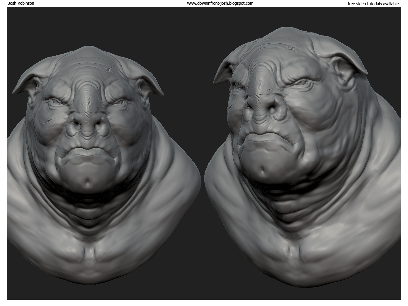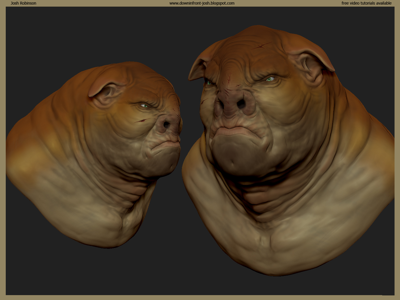 I spent about 2 hours on the sculpt from a cube and the color pass is just for concept. Maybe 45 minutes or so for color. Enjoy