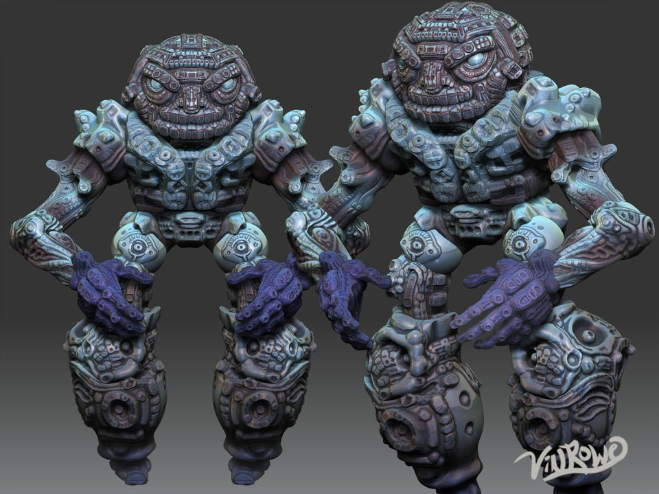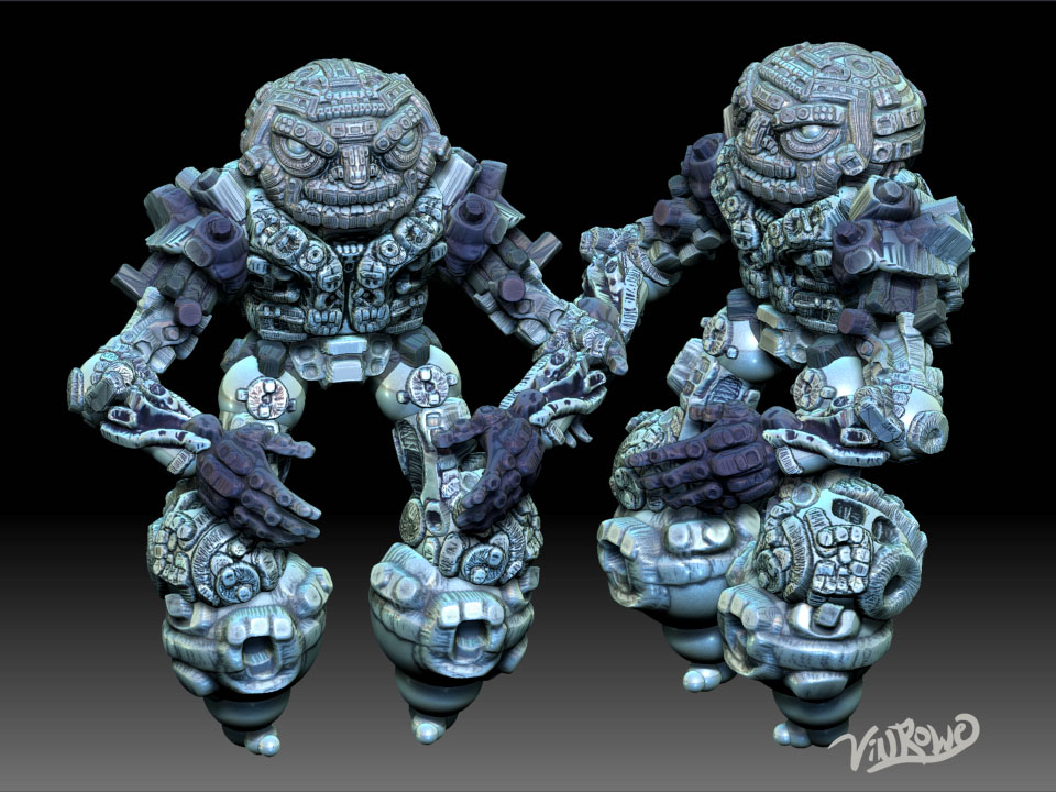 Hi, I hope you like this guy. I wanted to mess around with 2 things: the WackingMallet brush preset (which is very good for messy pseudo-organo-mechanical surfaces; it’s about the only brush I used), and cavity masking. Oh, almost forgot to say that the material is one of the new Mahlikus ones around here someplace. Thanks very kindly MTB!