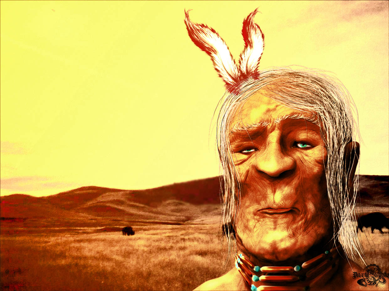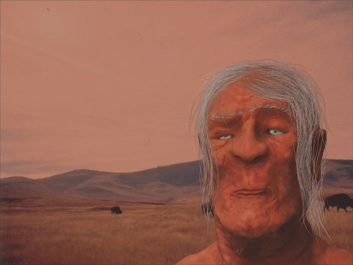 here is an update of the older man, i thought of a scene in the wild west back in time, were american indians were free walking trough the bufalos. still need so much work but here an advance.