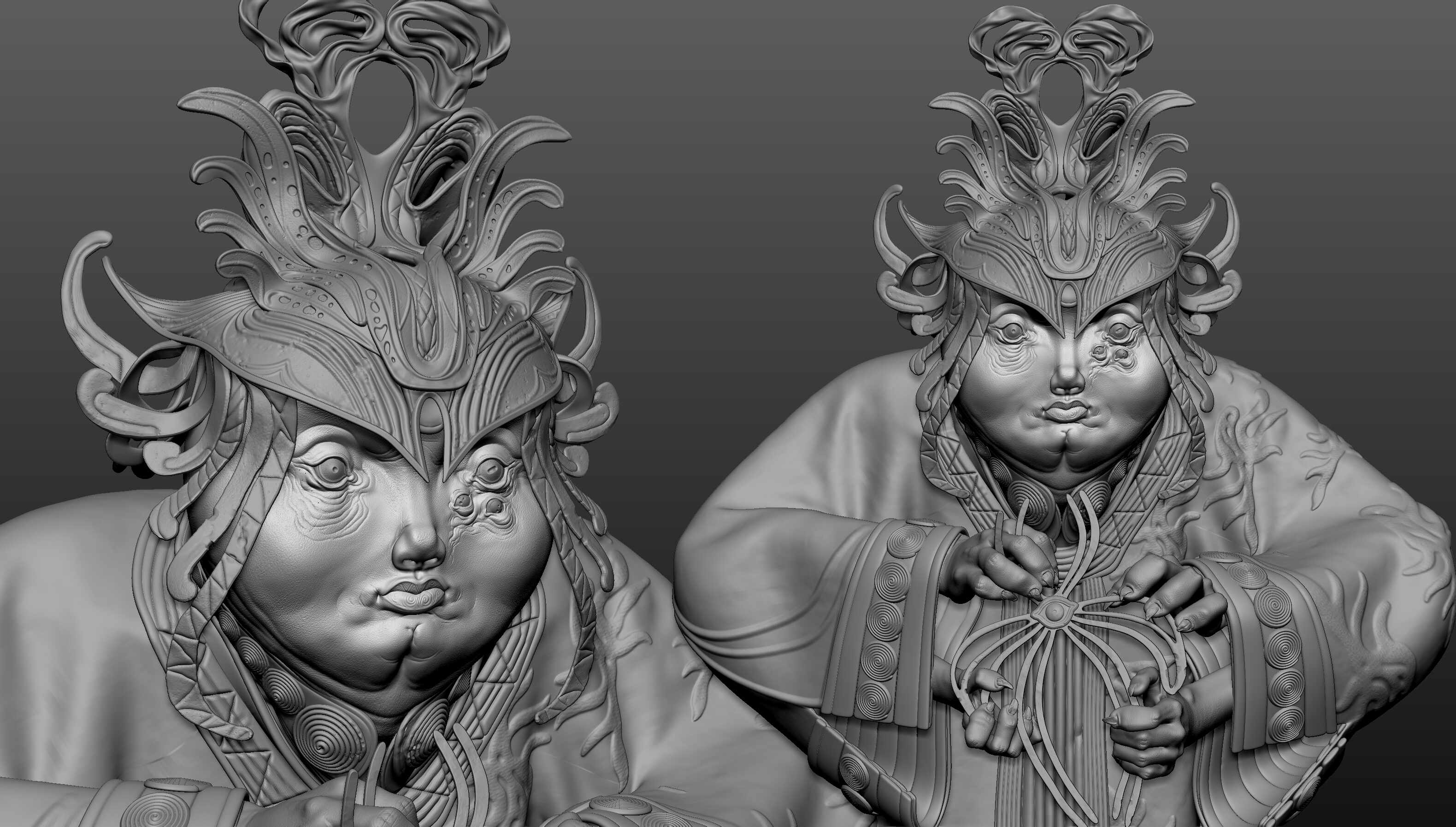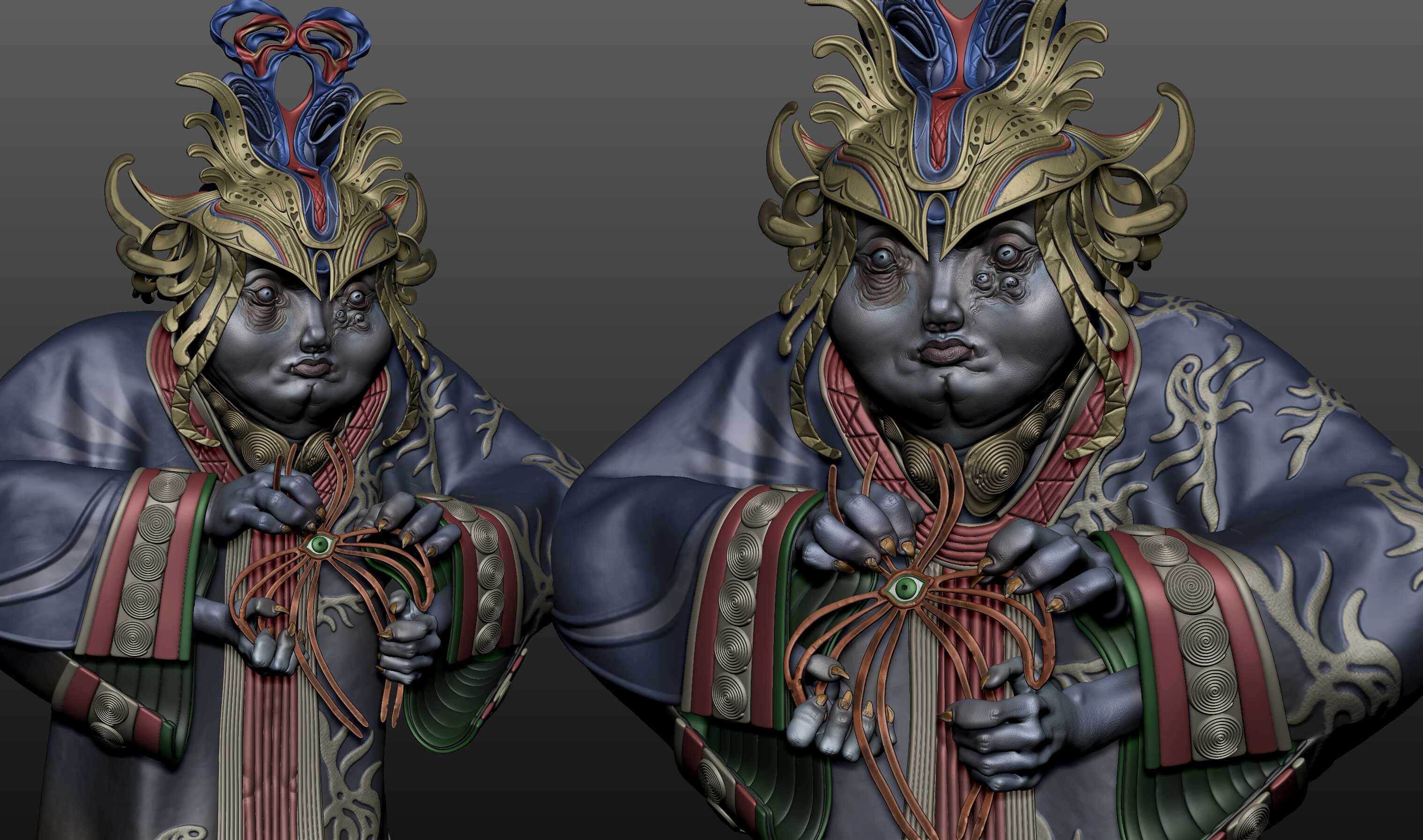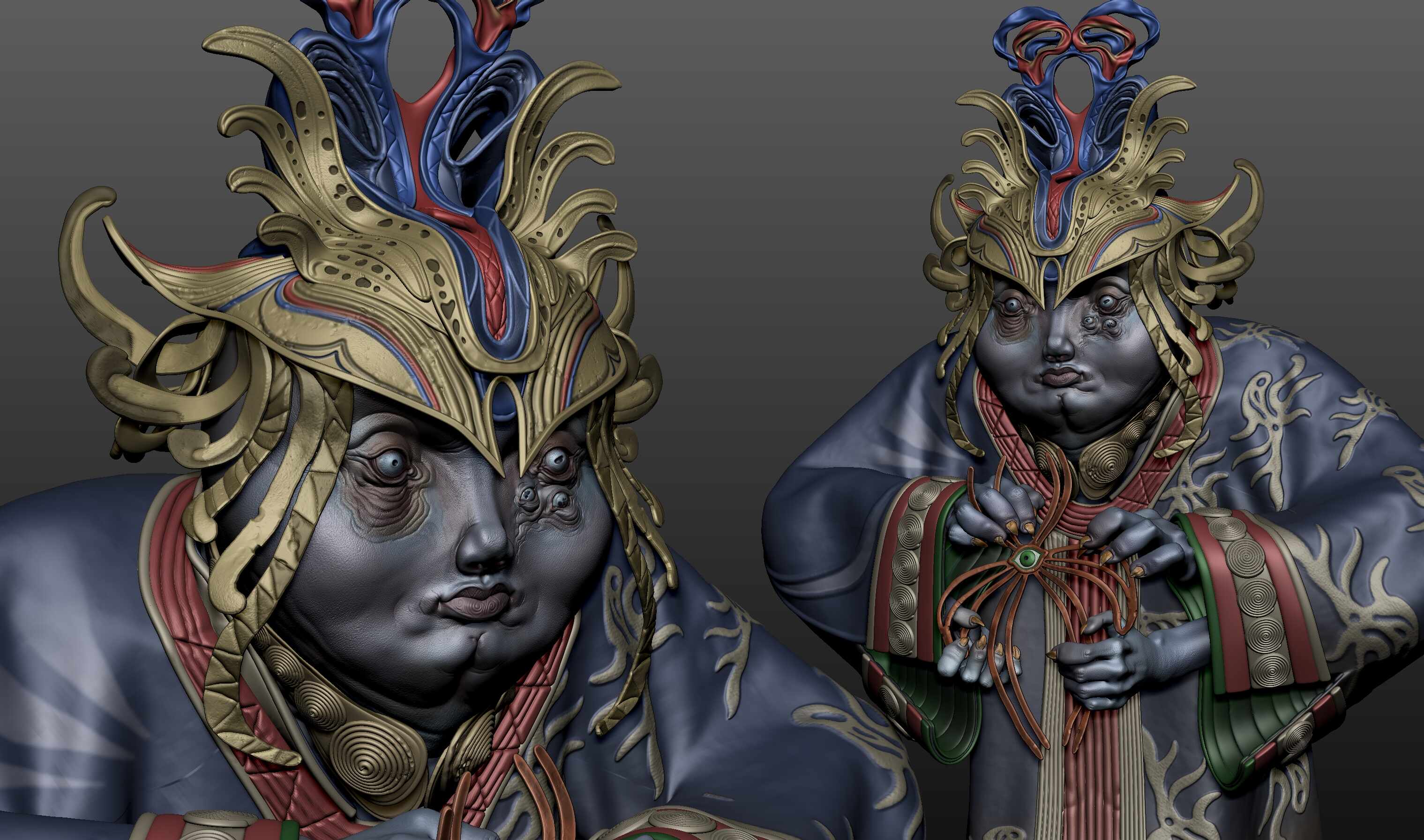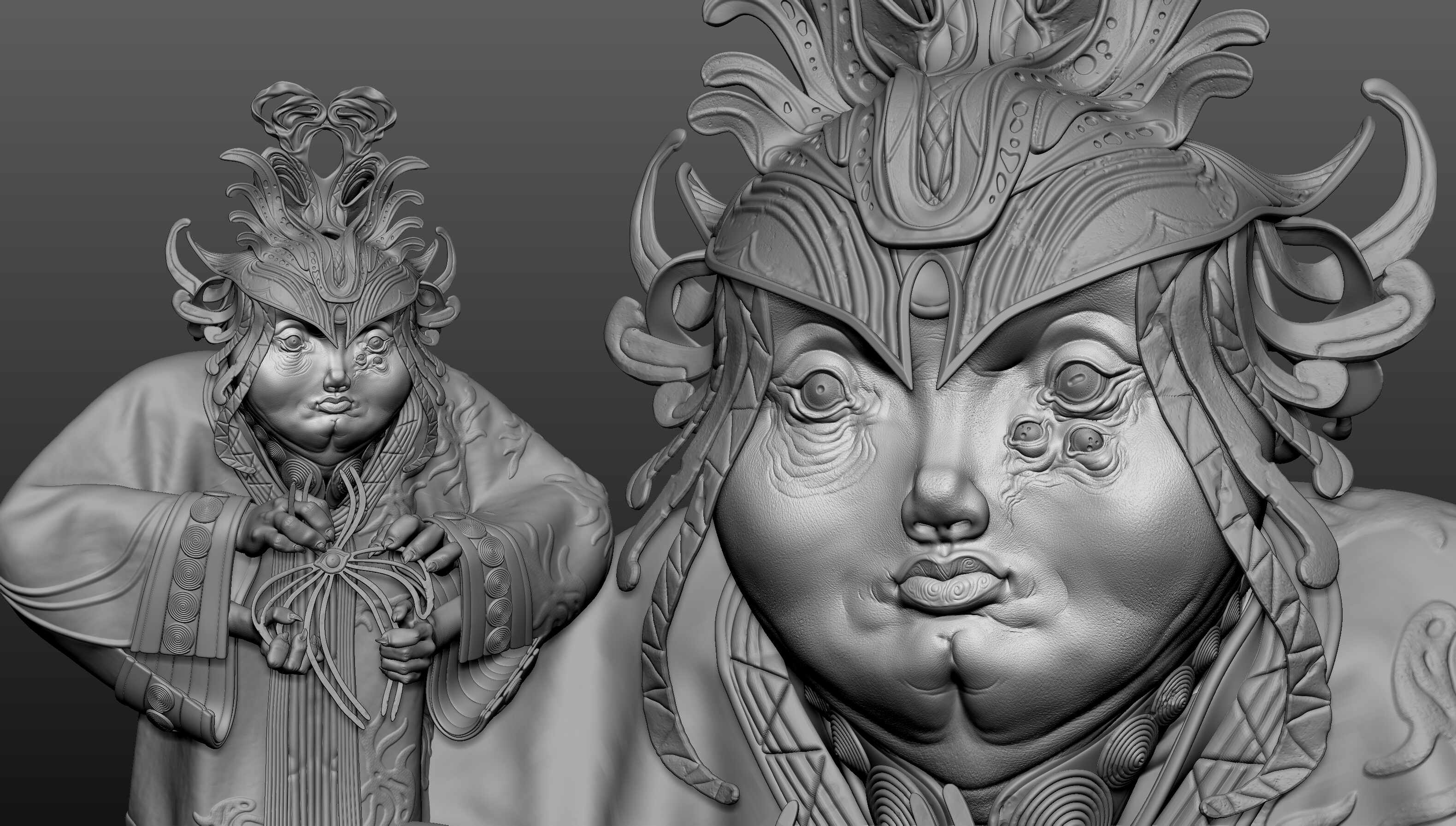 I designed that concept quickly in 2 days, skipped the UV and optimization part, and directly rendered the decimated object in a real-time engine with polypaints