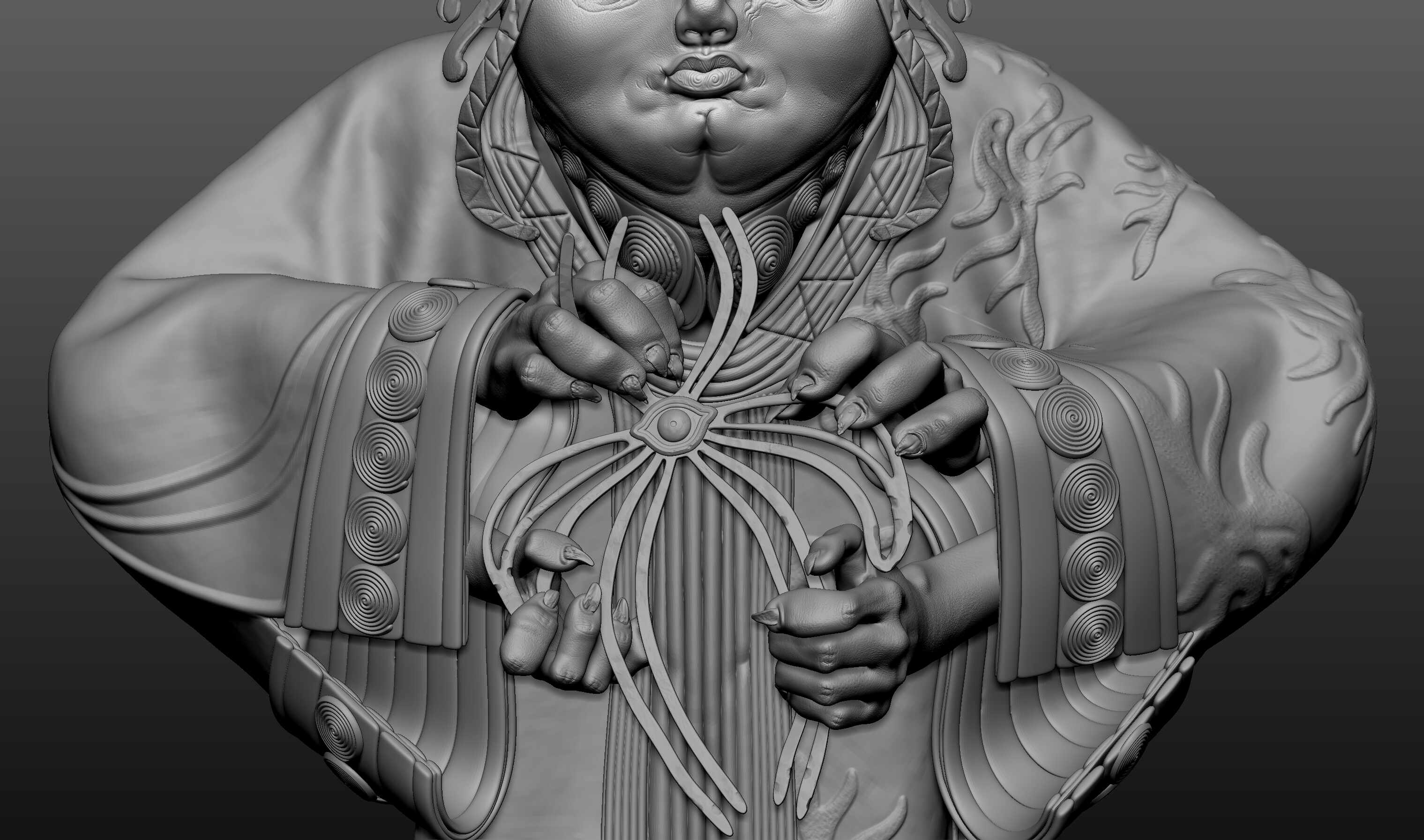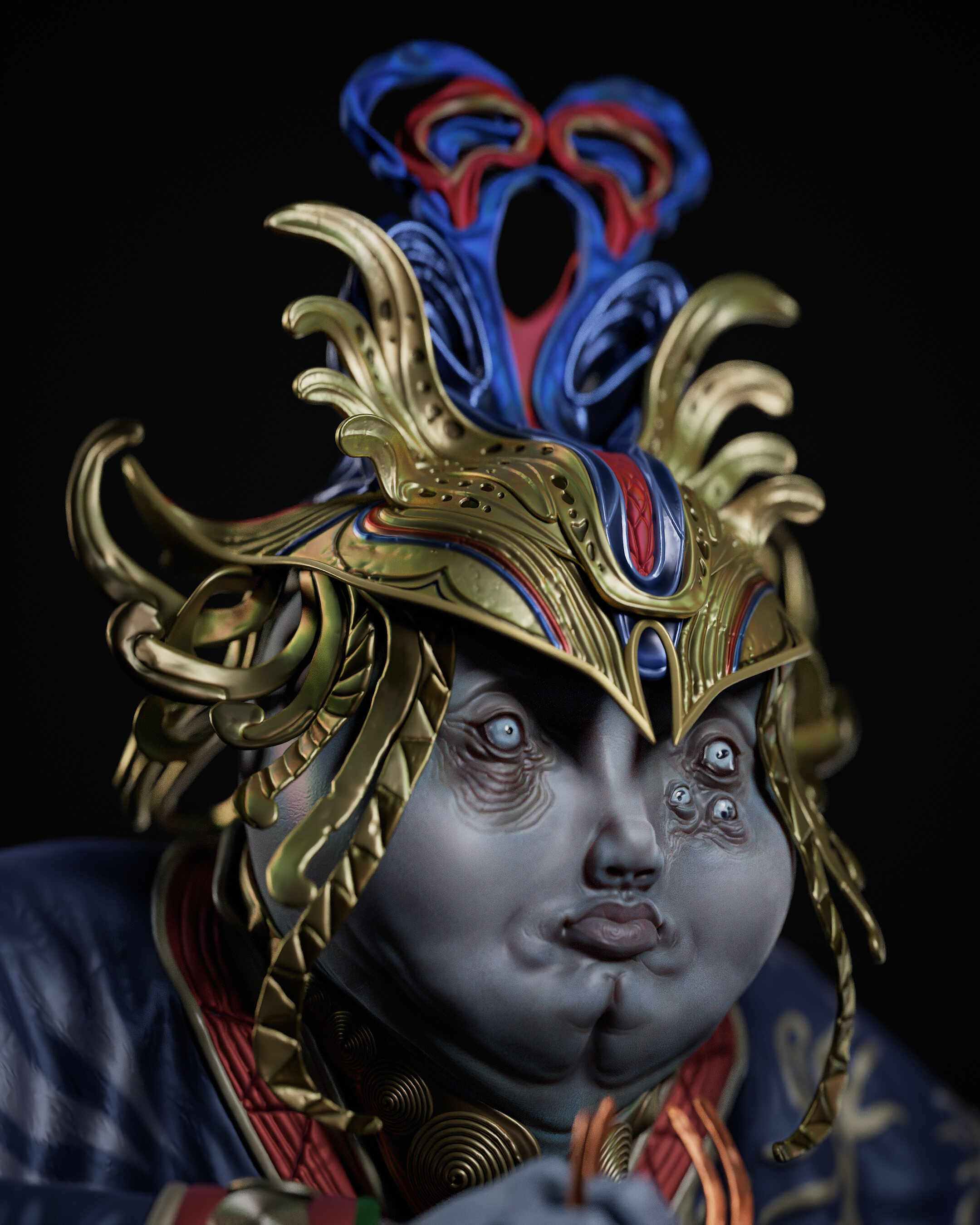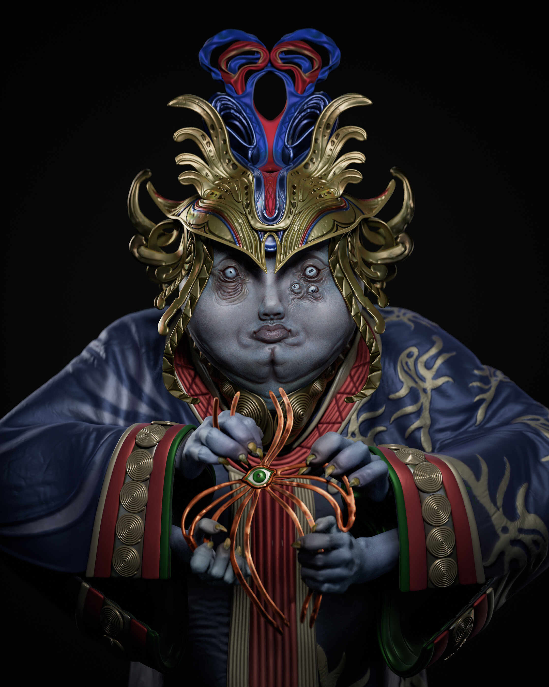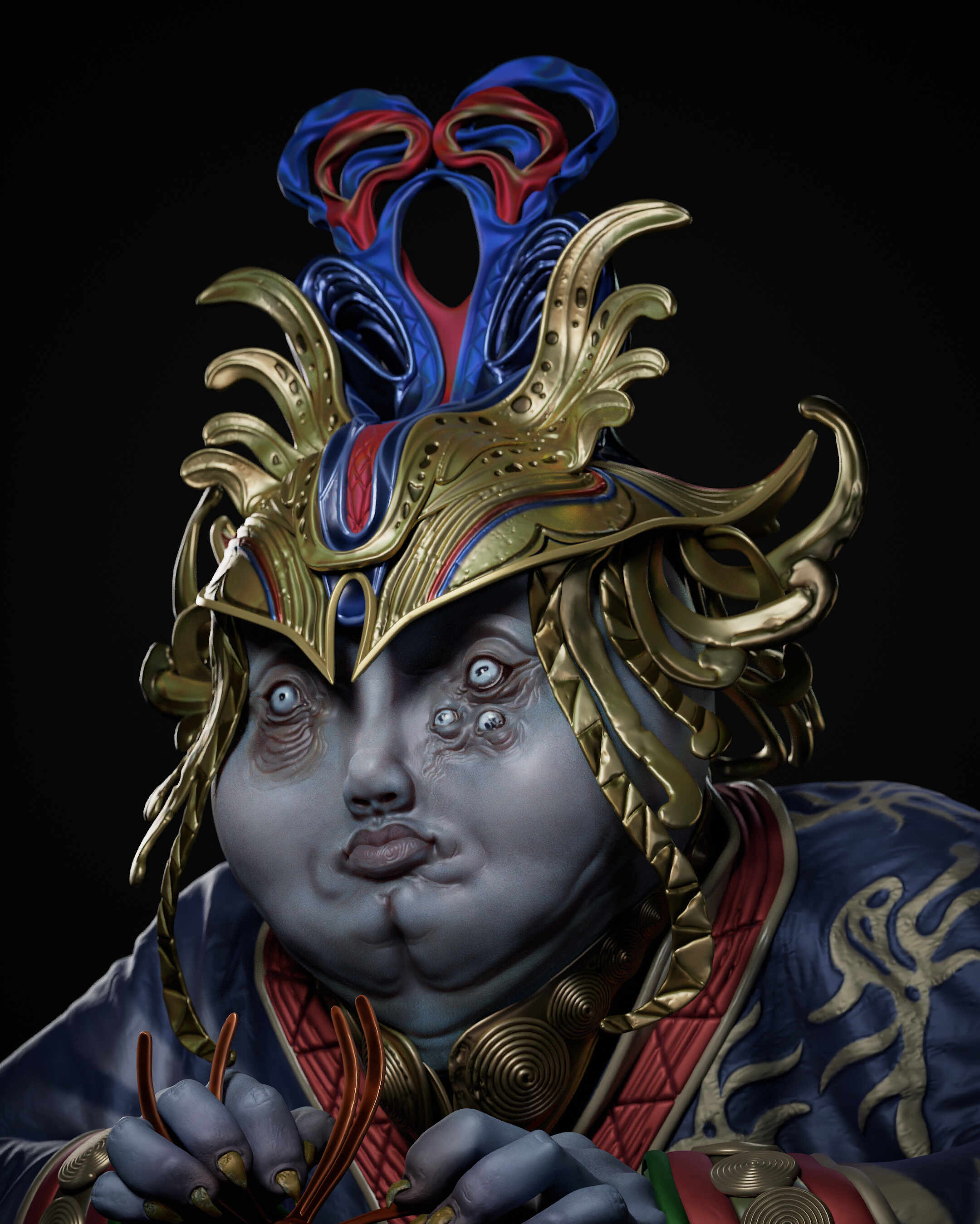 I designed that concept quickly in 2 days, skipped the UV and optimization part, and directly rendered the decimated object in a real-time engine with polypaints