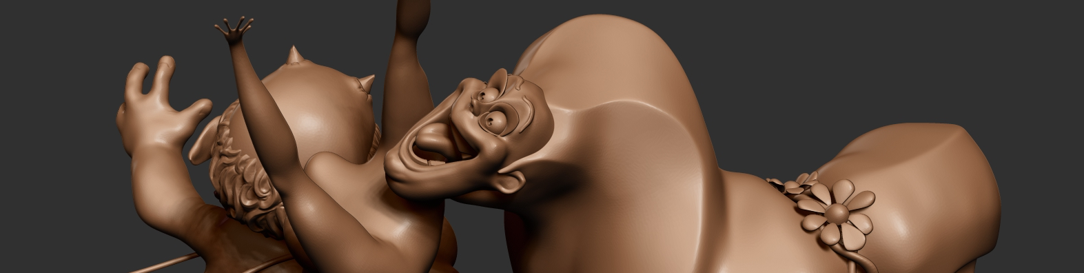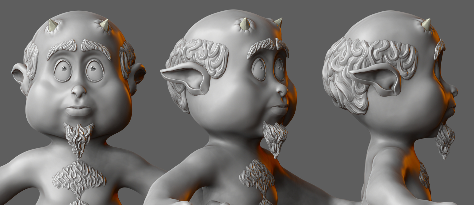 I started with ZSpheres and designed, modeled and retopologized Pan.