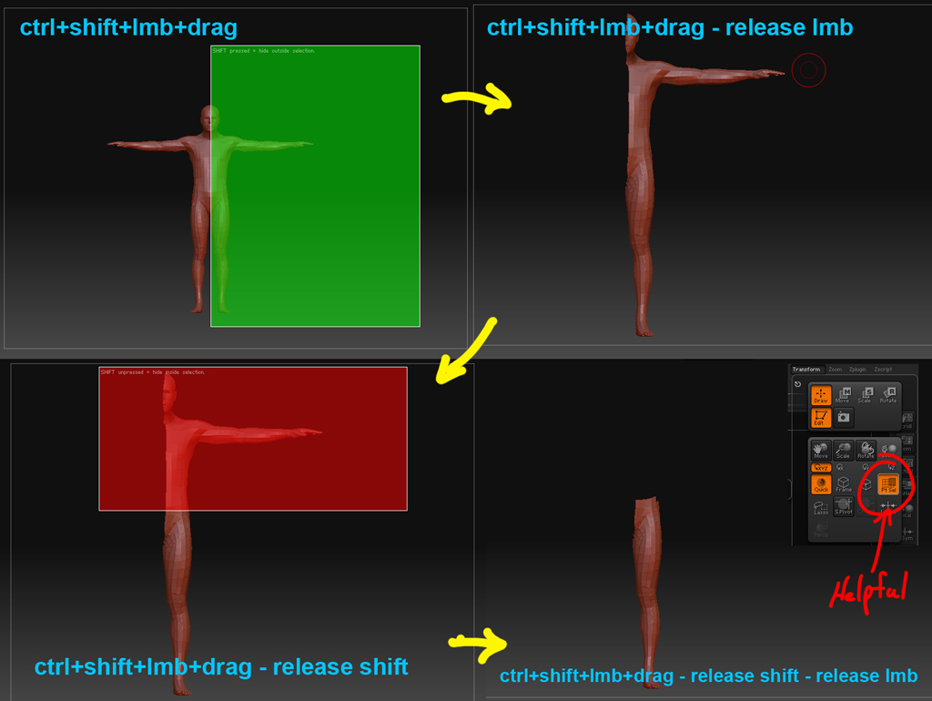 Minutes later, when I view the Frame of the tool, the polygroup is different than what I made. Sometimes it includes parts of the mesh I hadn’t intended.