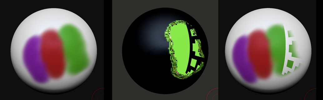 A problem occurred for me when I tried to create a texture from Polypaint when some of my painting was on separate layers. I’ve attached an image of some simple painting on a sphere and a couple of the results I get when I try to create a texture from Polypaint. It doesn’t seem to make any difference if I bake all layers beforehand… Wouldn’t it be great if you could paint in layers and then create individual textures of each layer!
