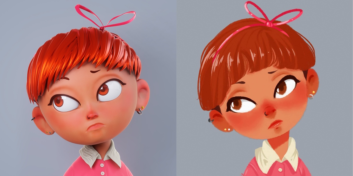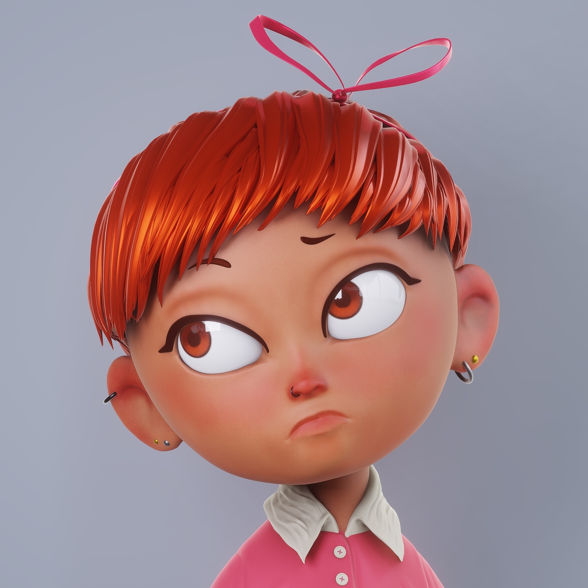 Modeled in zBrush and rendered in Blender eevee, gift for my friend anetriz , made of a portrait of herself drawn by her.