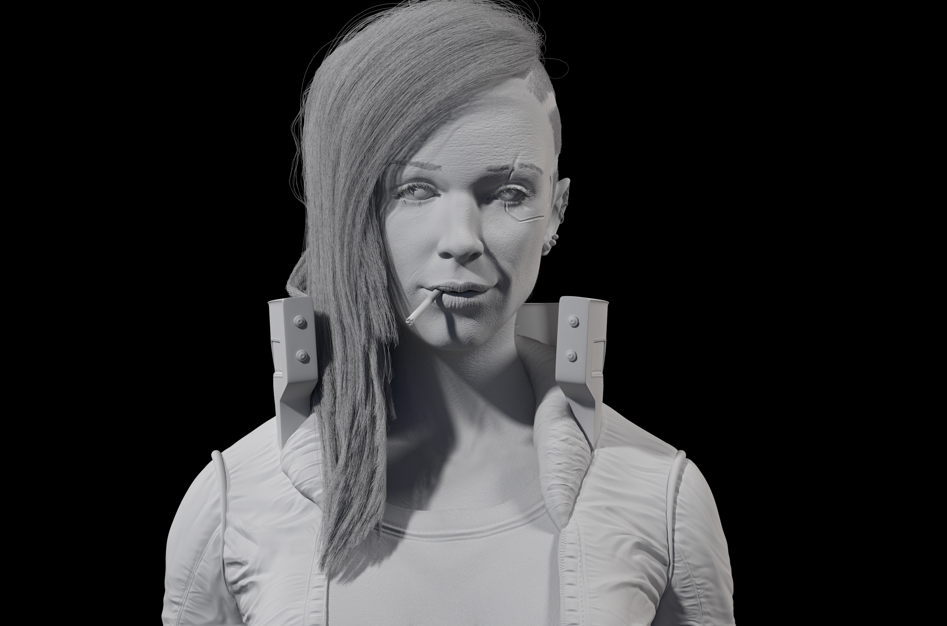 For the creation of the skin pores I used alpha brush in zbrush and I painted the skin in substance painter.