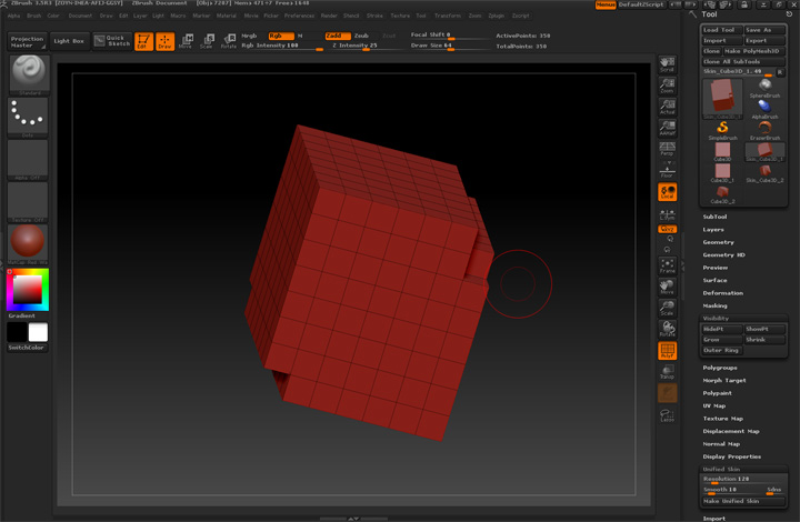 I came across some tutorials on the web showing how and why to unified skin. It is a basic set up for cube modeling. Using unified skin and lowering the resolution can get rid of the pinching point a 3D cube mesh has.