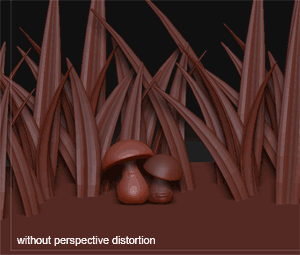I made two mushrooms in ZBrush2. now i wanna make a complete scene with them and use the subtools for this. but the problem is, the perspective distortion don’t work well on all subtools together.