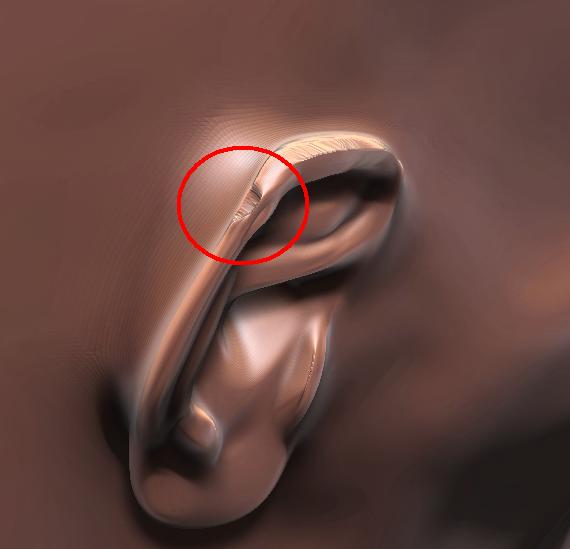 in the picture you can see my problem i paint on the front side of the ear but the backside is also deformed