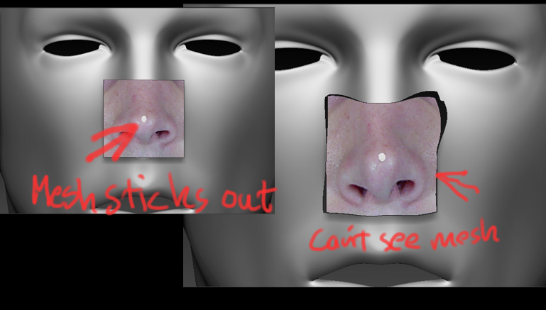Now, when I want to allign the texture to the face features I can’t see the mesh