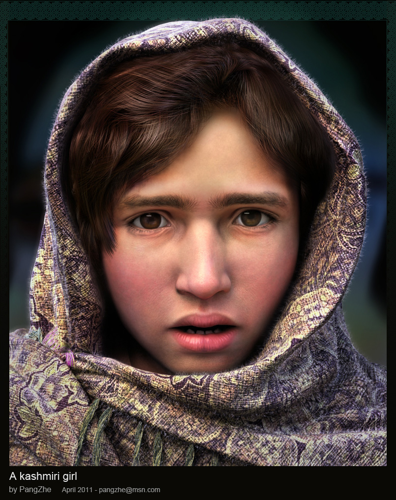 The two pictures "girl"and “old lady”, their expression realy touched me when i first saw their photo.I think maybe i can show that .I know maybe there’s a lot of bad but I tried.See you like her I very happy.THX.