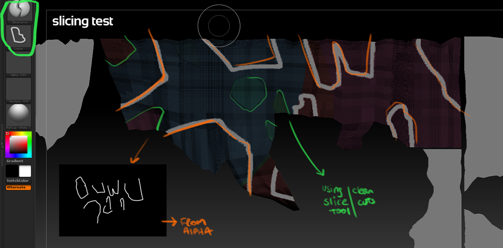 I ve been slicing the pieces by hand kind of by eyeballing reference, and I am wondering if I can actually slice a grid in zb using an alpha mask. (kind of like DMM for maya would do with a .png)