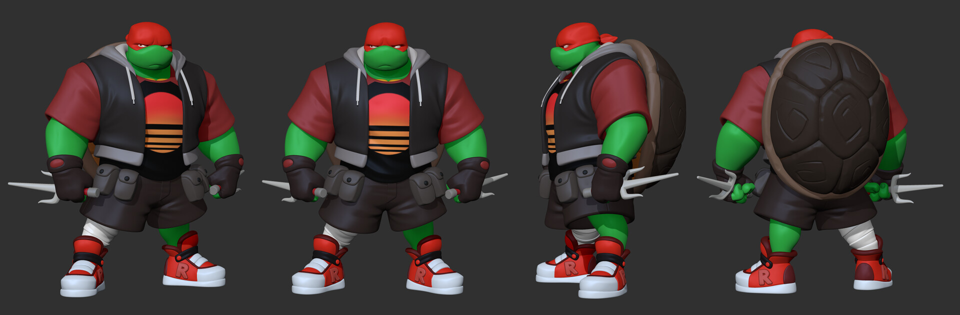 Raph from TMNT. This is a personal group project where me and the very talented Sebastiao Lopes created a ready-to-animate character and a printable statue.