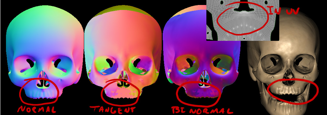 The Problem: Strange artifacts seen in the specular highlights… it seems as though the texture of the polygons is reversed. the specular in these areas are dull when theyre supposed to be shiny, shiny when theyre supposed to be dull, and normal map information is reversed