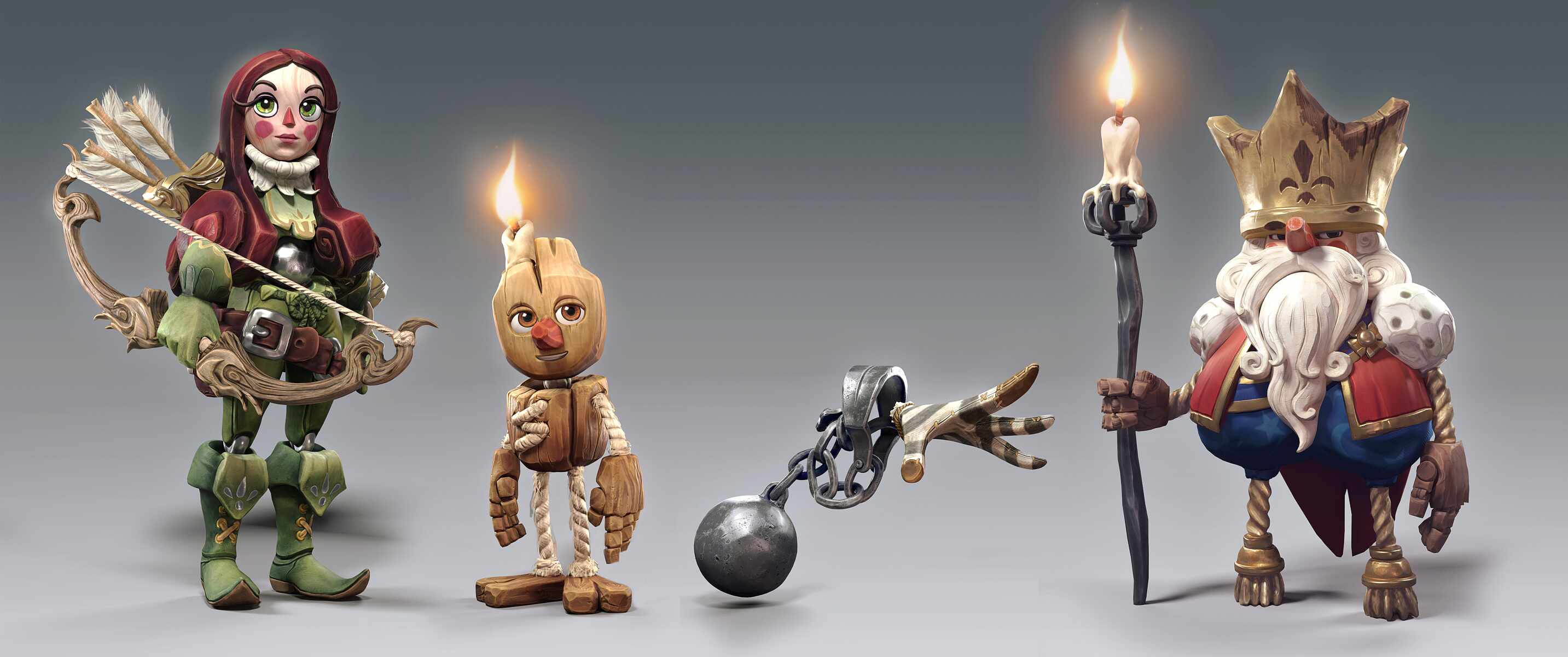 These are some of the primary puppet characters, the Old King, The Huntress and Nieve.
