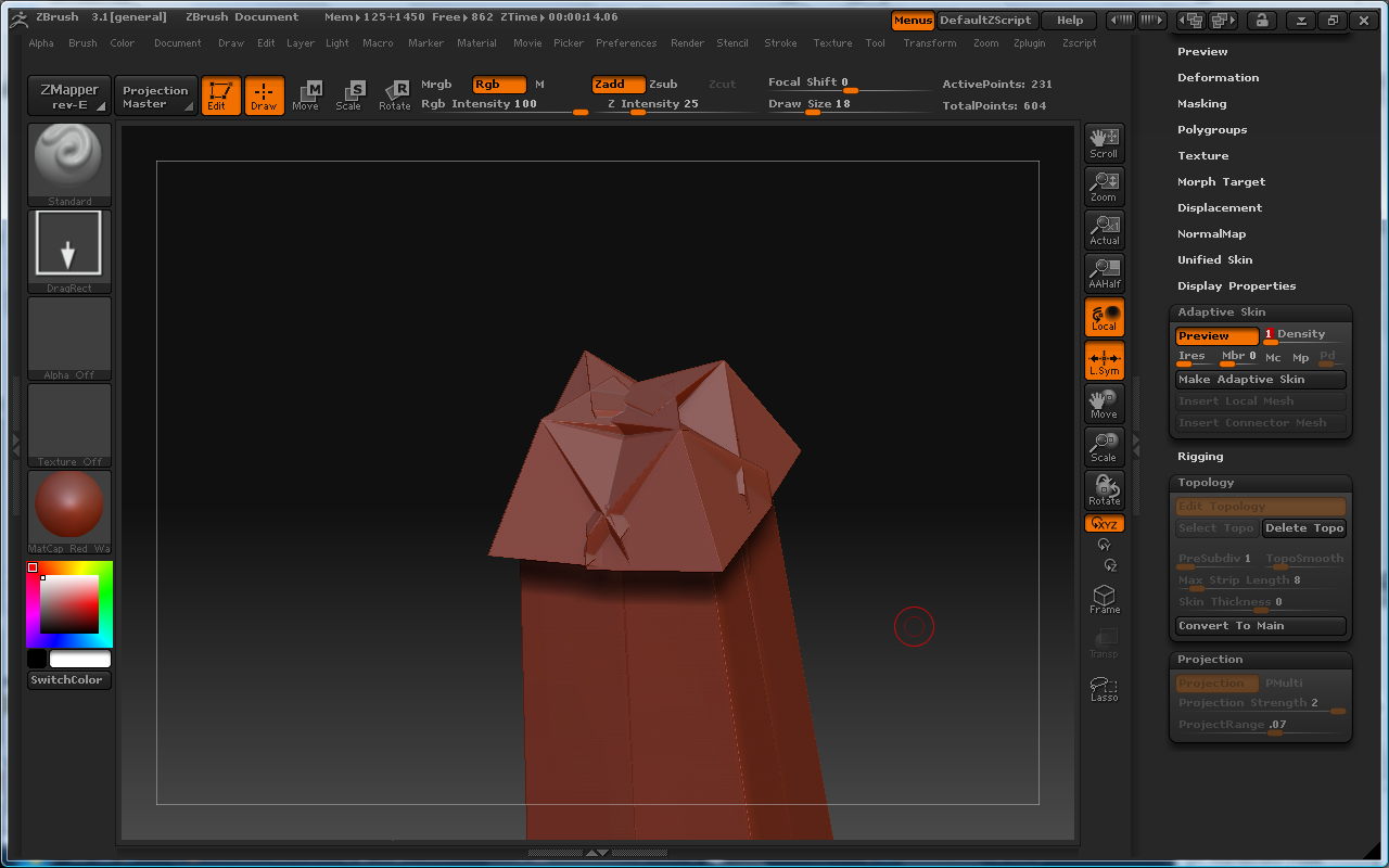 - Column3 shows the adaptive skin version of the new topology with projection turned OFF (at the lowest subdiv level).