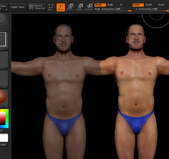 Hey ppl. I got an issue with my most recent sculpt. I left my Zbrush running to make supper and when I came back the color of my sculpt was desaturated along with all included subtools. When I make a new texture from polypaint the saturation comes out fine but in the viewport is where something is messed up. I looked in as many places I could think of and cannot for the life of me figure it out. I filled object using MRGB flat shader with a white color and it comes out a bright grey. I messed around with the light intensity and still nothing. I made a side by side comparison with my previous save and there is definately something funky going on here. Are my children to blame while I was away or could this just be a corrupt file. Thanx ahead.