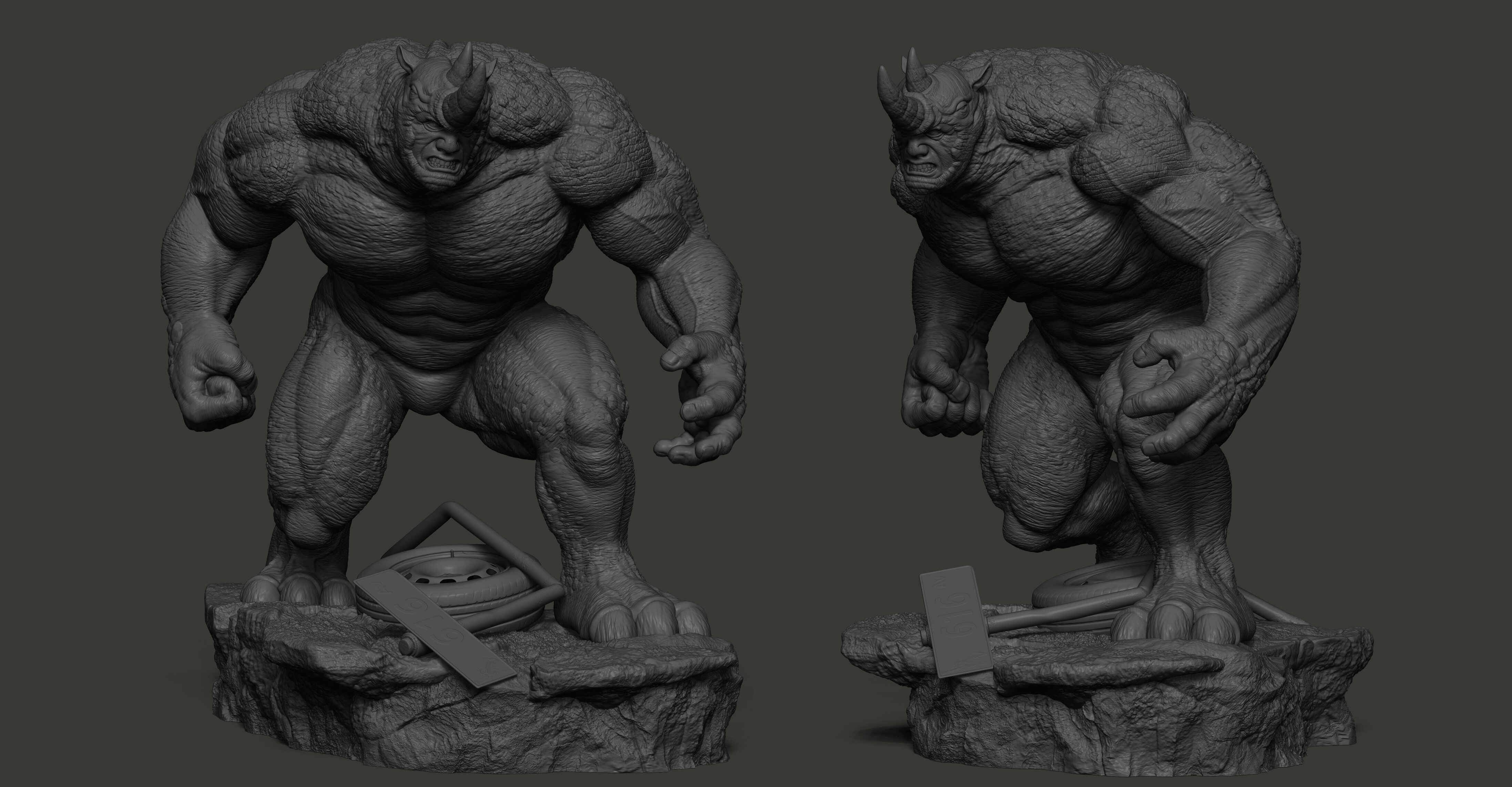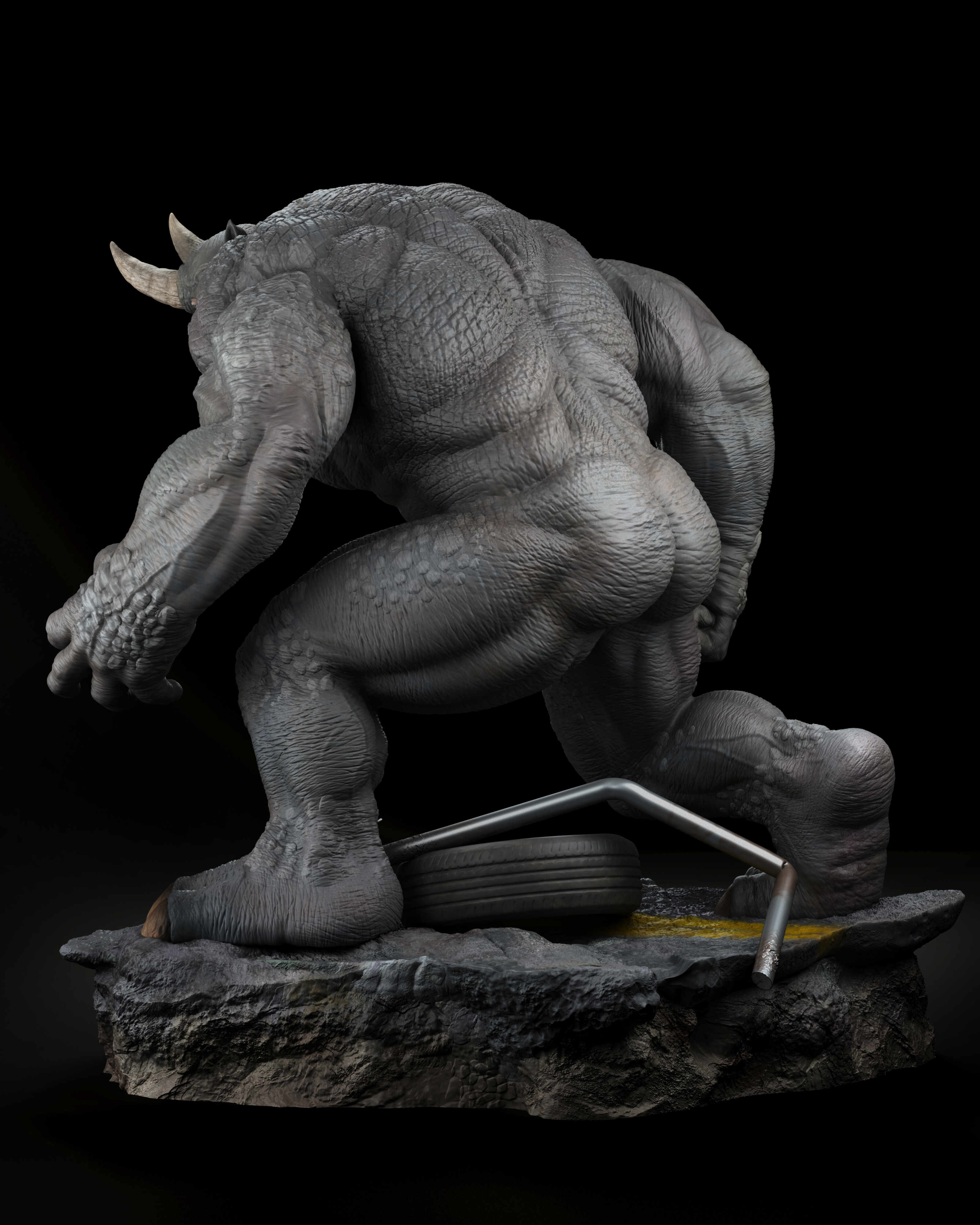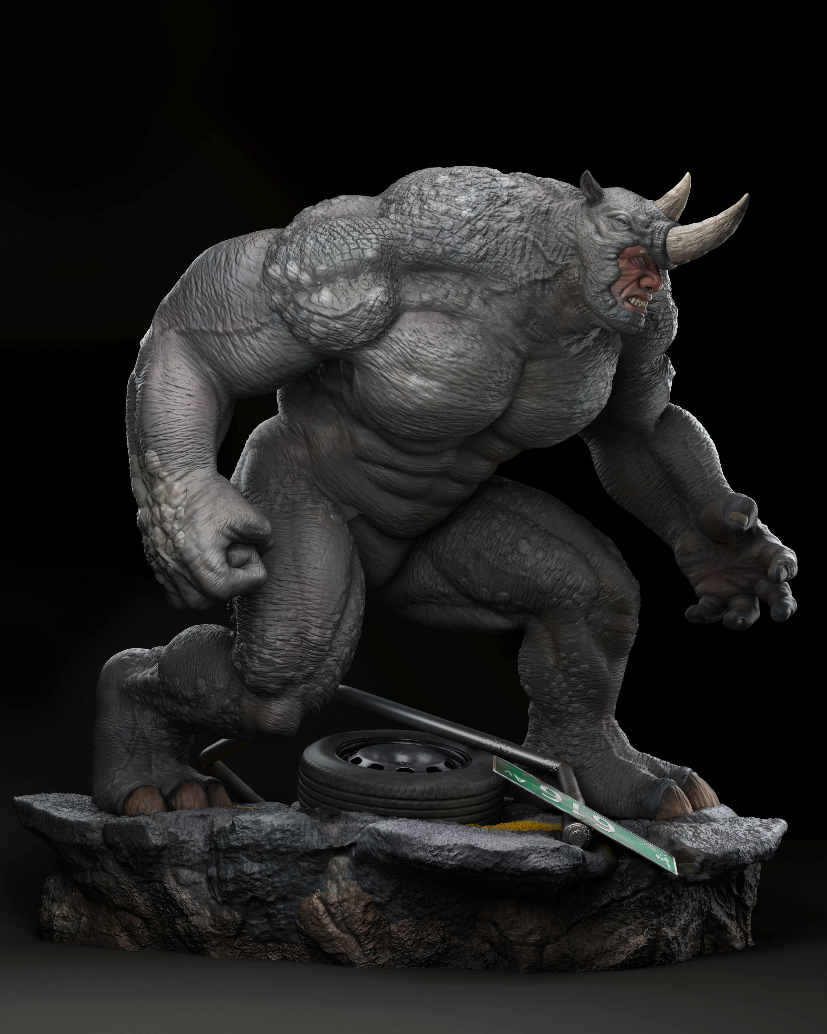 Hello! This is my latest collectible artwork, Rhino from Marvel Comics. My goal was to capture his mass, brutality, and sense of power, focusing on a strong silhouette, solid anatomy, and surface details to make him feel believable as a collectible statue. I learned a lot during this process, and it helped me improve both my sculpting and presentation skills.