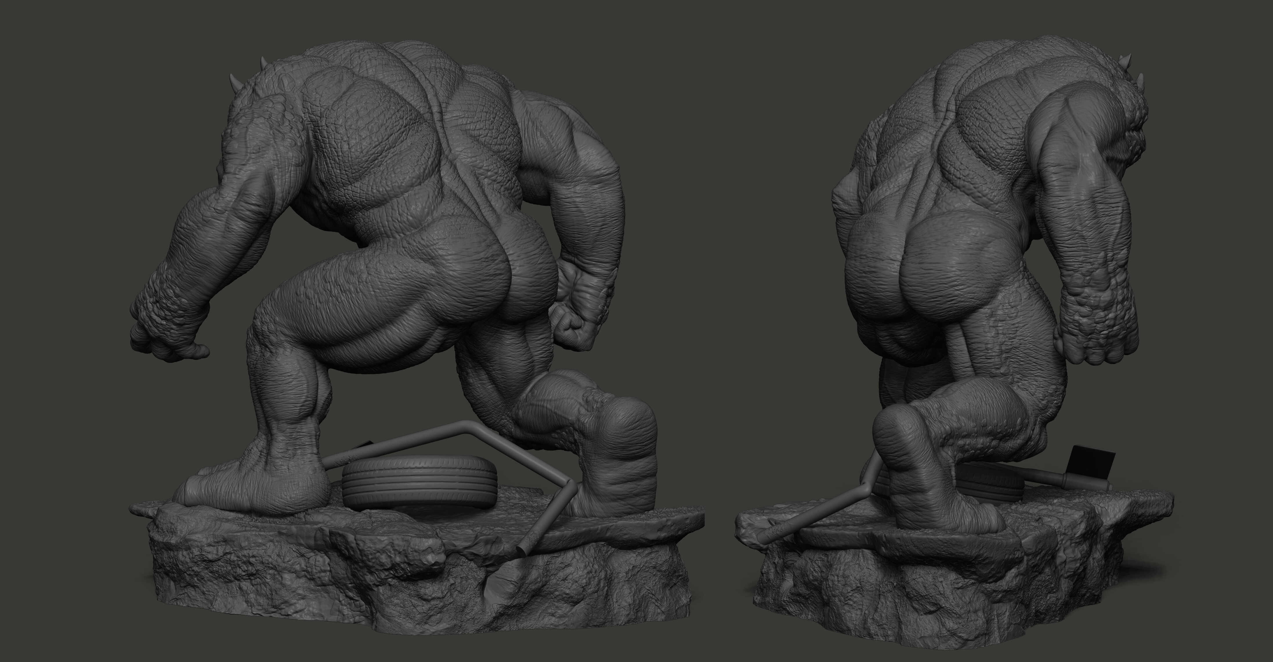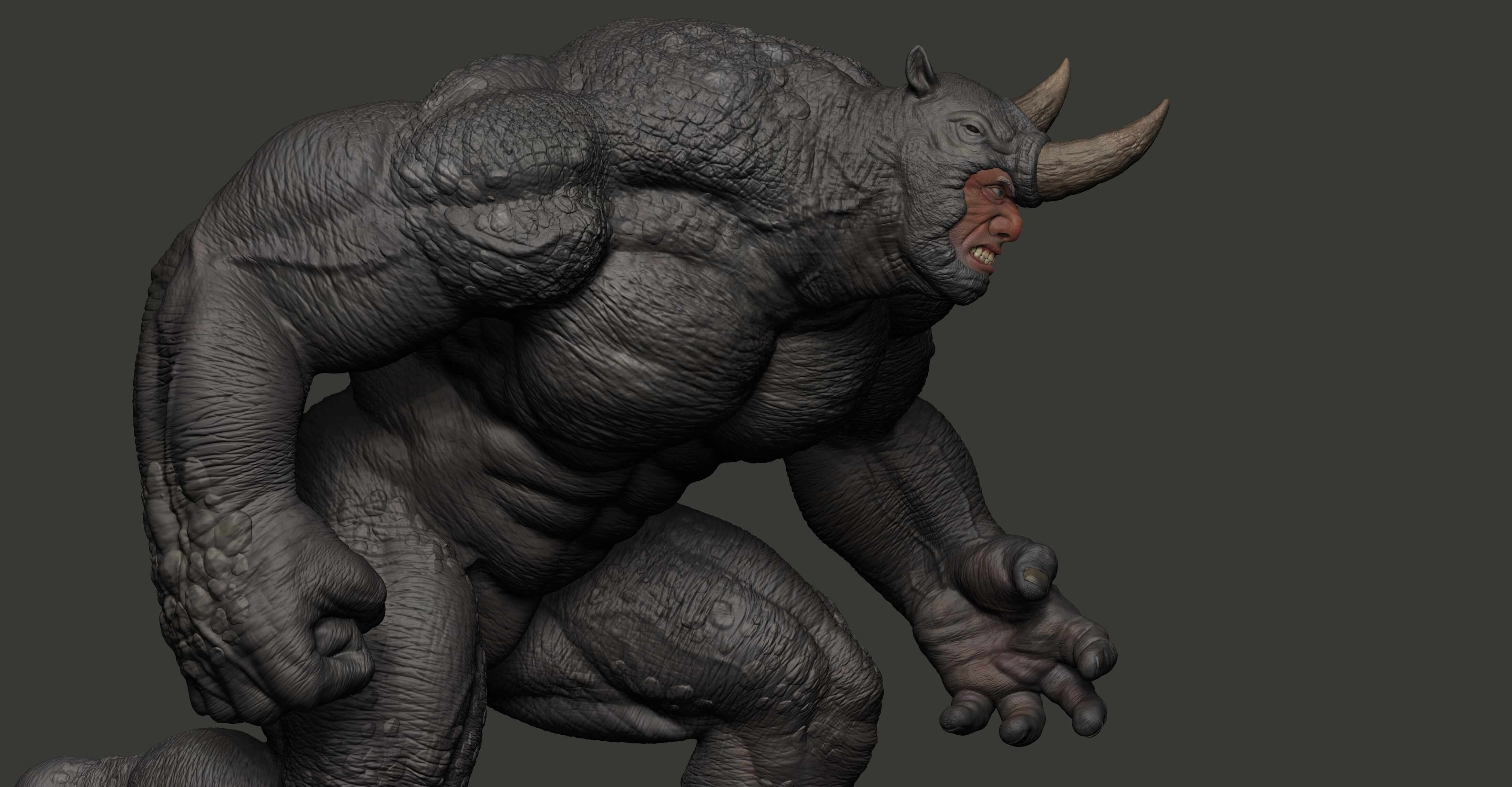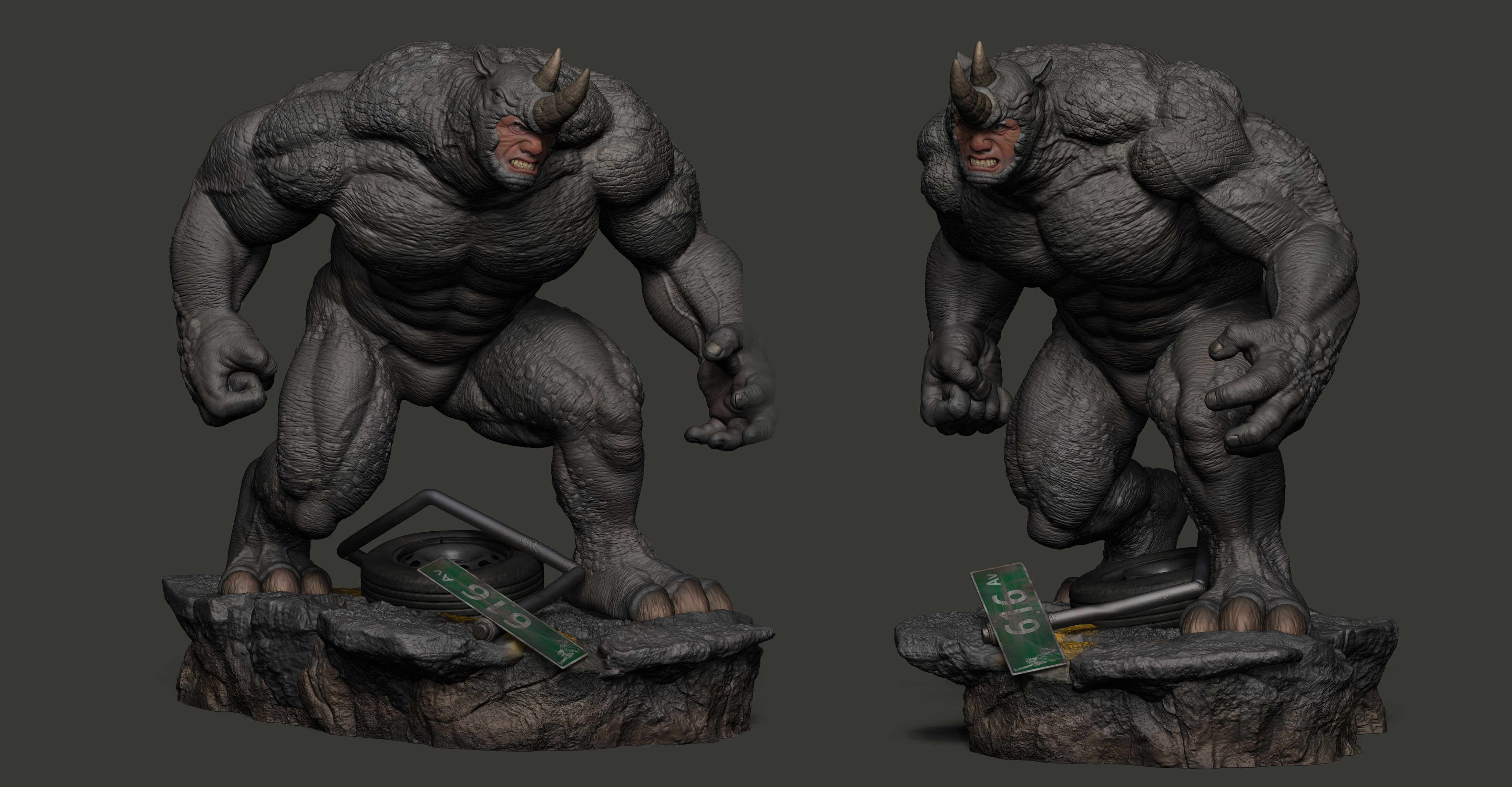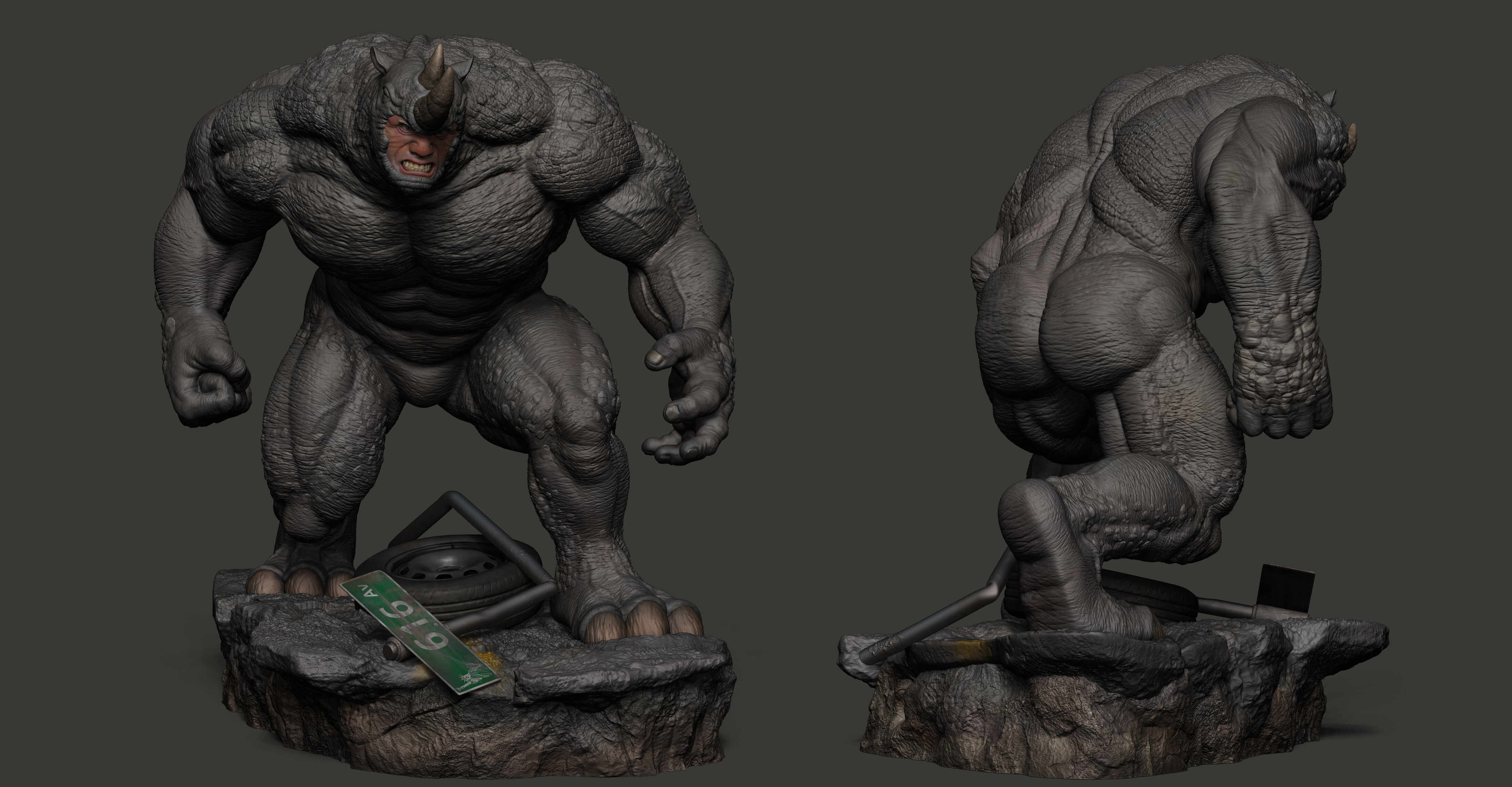 Hello! This is my latest collectible artwork, Rhino from Marvel Comics. My goal was to capture his mass, brutality, and sense of power, focusing on a strong silhouette, solid anatomy, and surface details to make him feel believable as a collectible statue. I learned a lot during this process, and it helped me improve both my sculpting and presentation skills.
