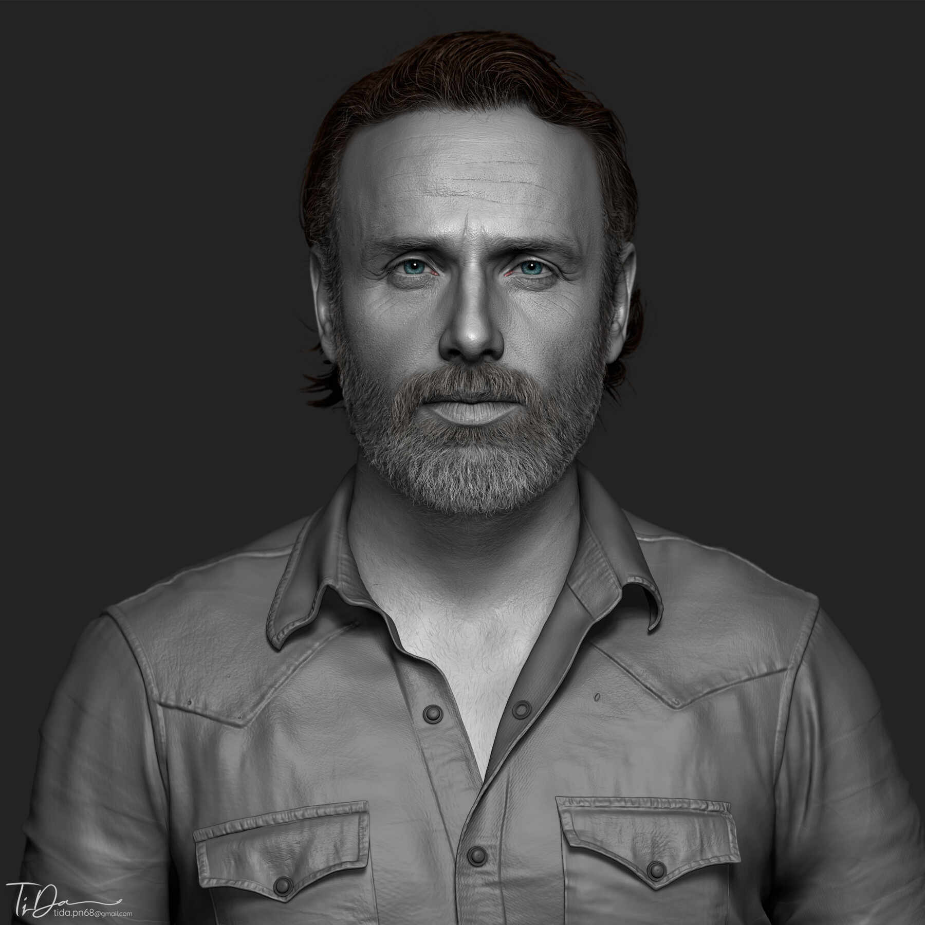 Here’s my likeness 3D head sculpt of Rick Grimes. Hope you like it.