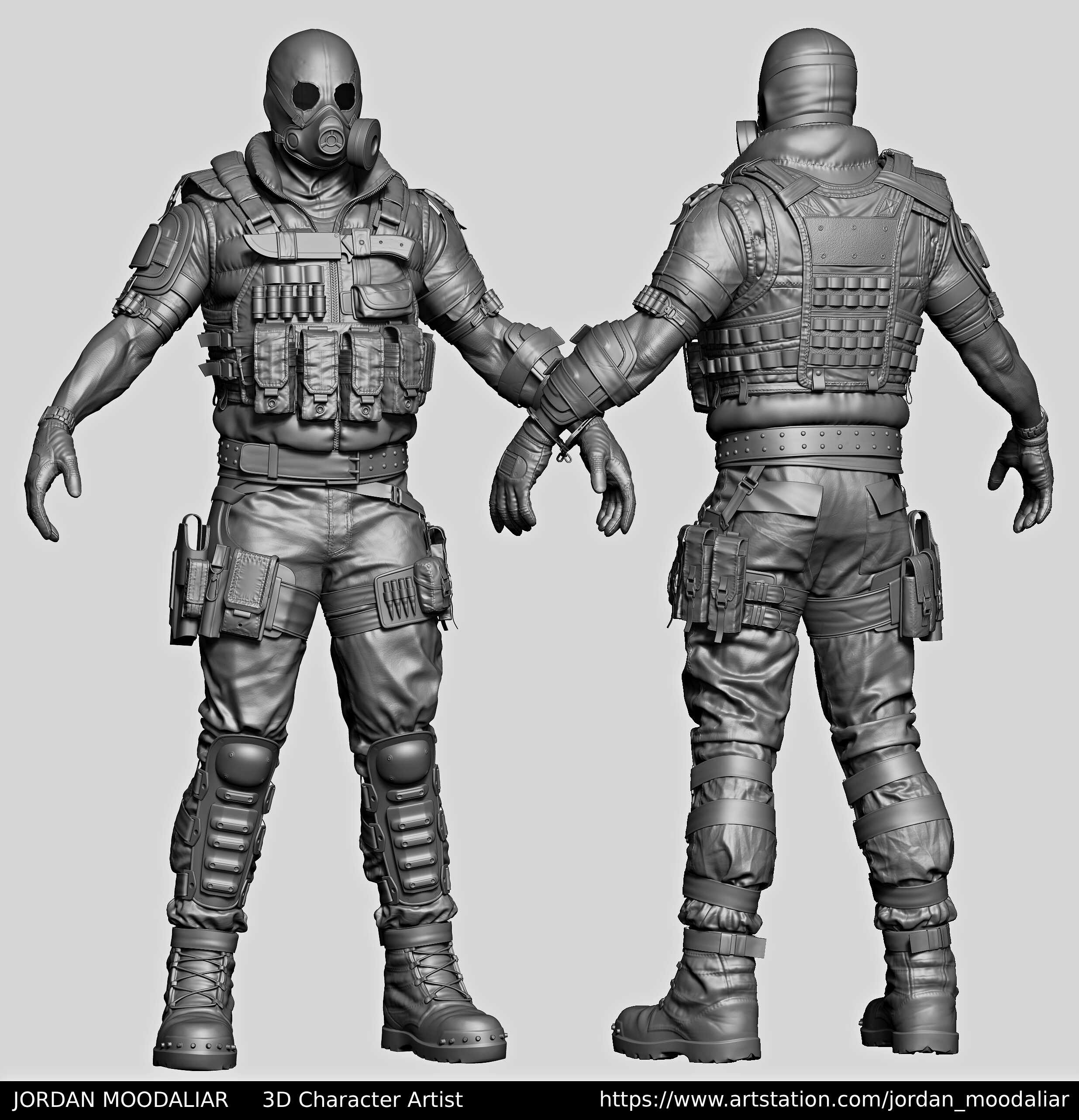 I wanted to share my latest character project. This was a personal project focused on building a realistic game-ready character while trying to push believable materials and strong forms.