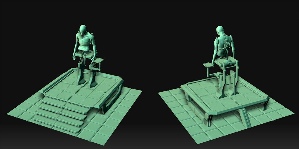 I have also added the mental ray render I used to start and a couple of grabs of the sculpt.