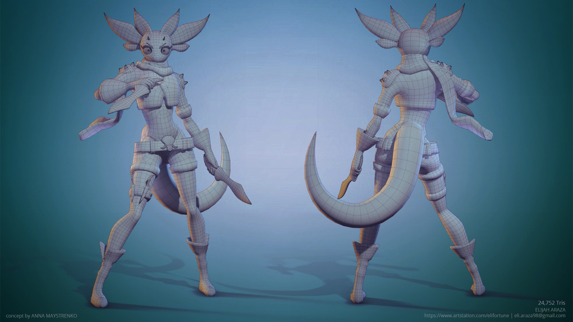 Hey all! I wanted to share my game-ready character that I sculpted for the February Stylized Character Challenge course in Vertex School (Game Art Institute). I had only 30 days to complete and it was a really fun learning experience throughout. Character concept by Anna Maystrenko https://www.artstation.com/lagunaya