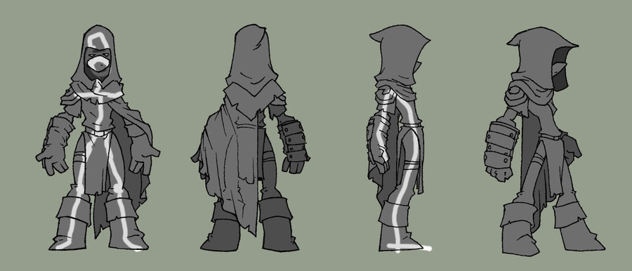 The cuff area, marked in dk blue, was created with the only thing I could think at the time(I’m sure there was a hard modeling solution in Zbrush for this but I don’t know of one), the clay brush. That of course created rough texture and not a nice solid thick piece, so I had to use the damian standard to create the underlying mesh, which would create the “rollover” cuff effect. So now I just have that thickness issue with the edge that should touch the leg(the blue ring).