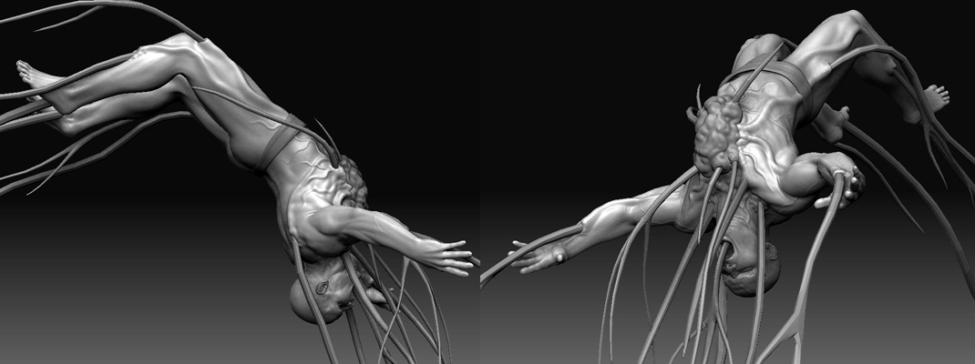 Wow. I just looked it up after you mentioned it, I hadn’t seen it before. It was pretty cool. Hopefully I get enough of a difference here to set it apart from that. Inspirations for this guy were Evil Dead, Bodysnatchers, and Hercules VS Antaeus.