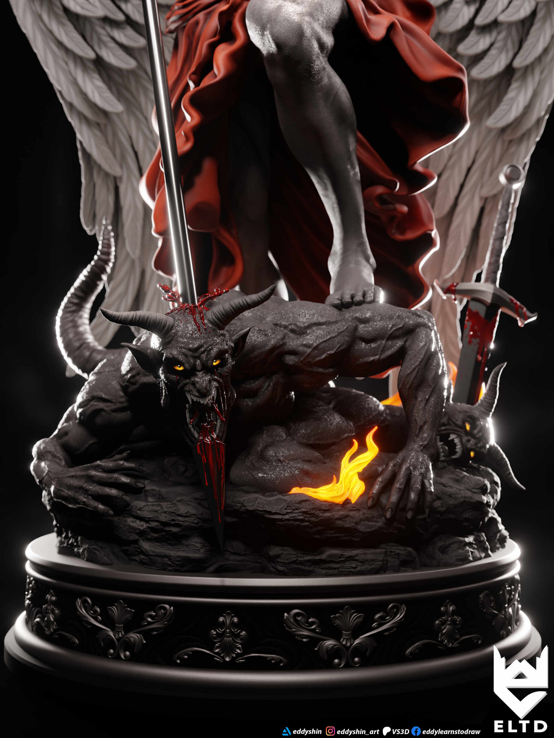 Hello everyone! This is my Saint Michael fanart, inspired by images I found online. I used Zbrush to sculpt and Blender Cycles to render. Hope you like it!