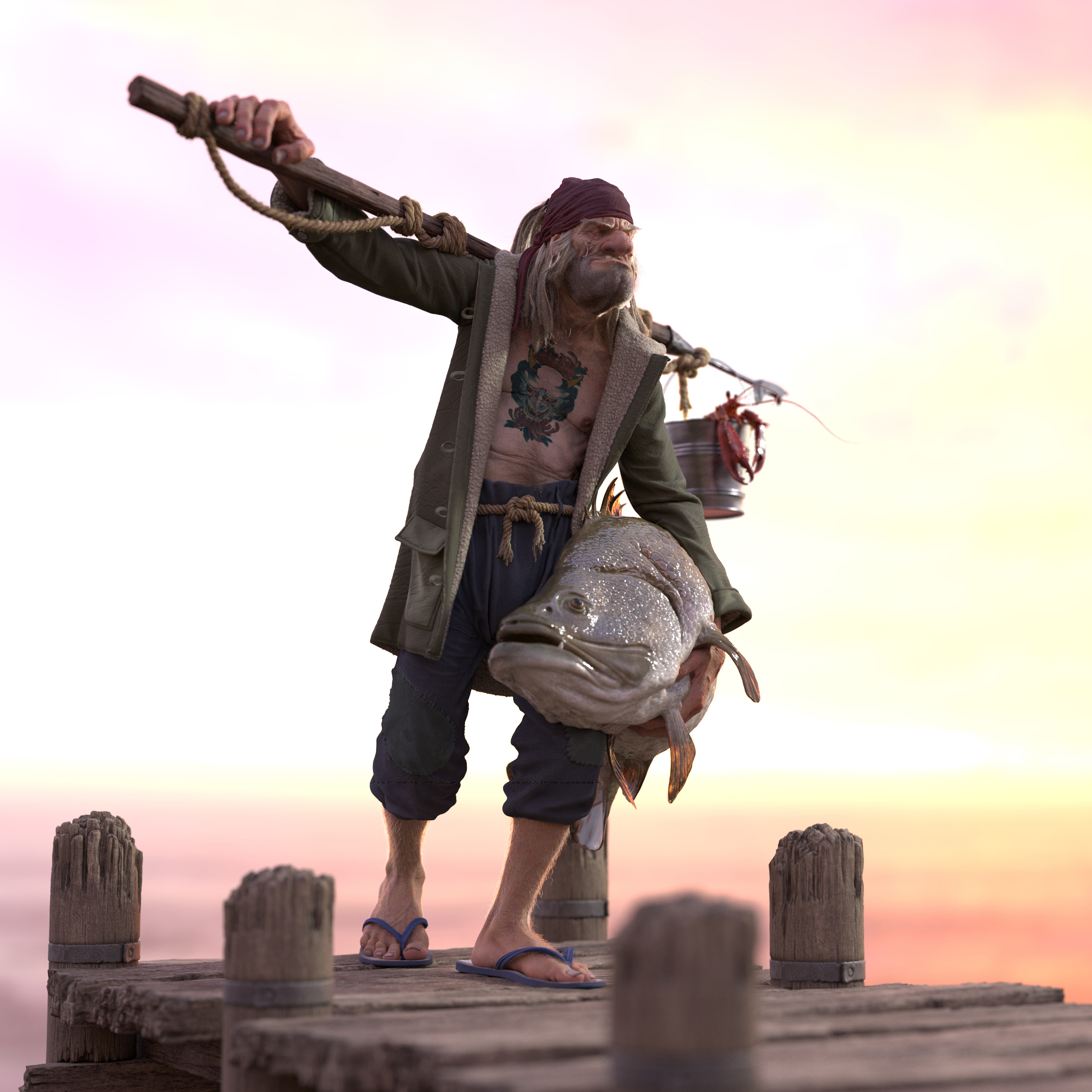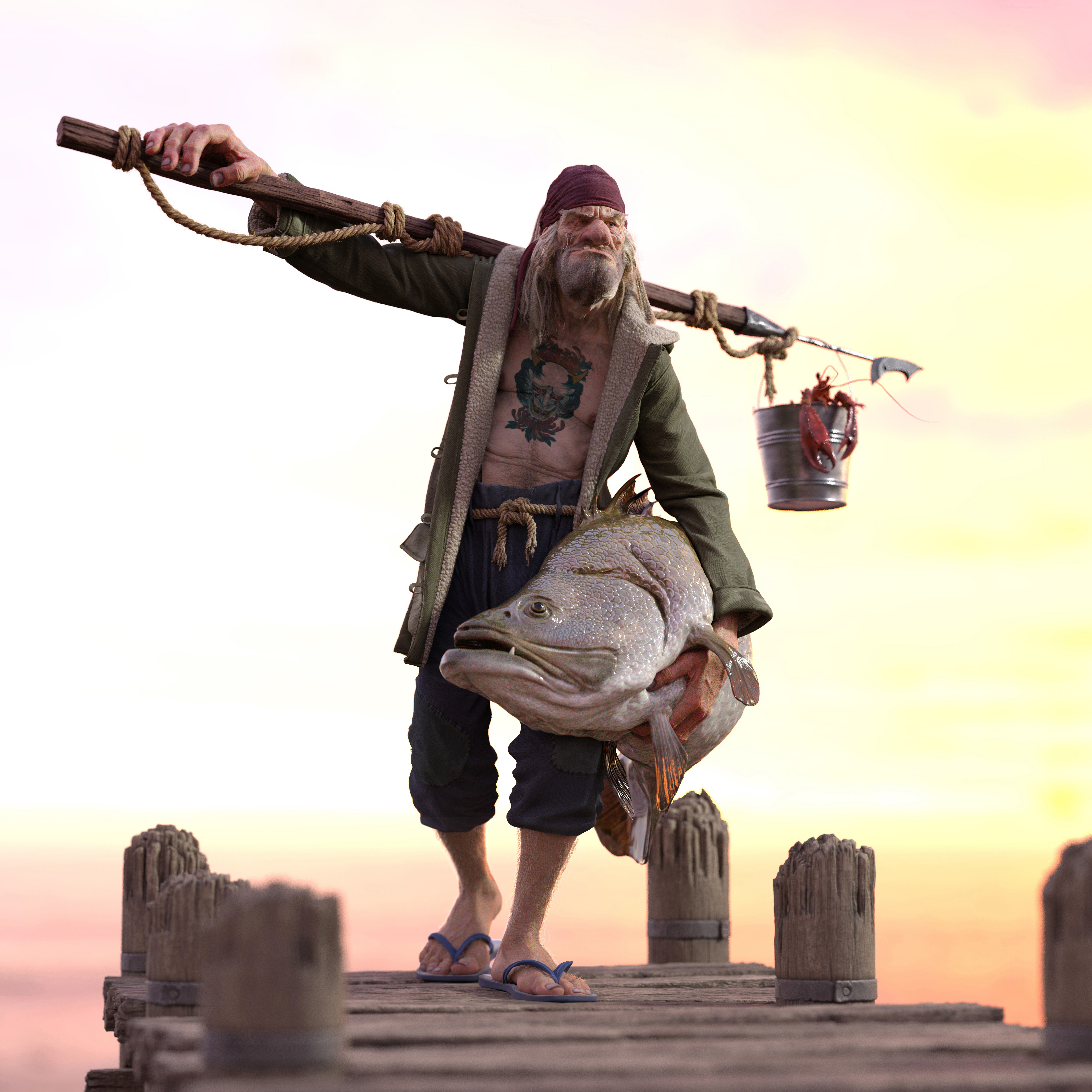 (who needs a doctor?) what a mug!! For an old skinny fisherman he’s got super powers carrying that fish