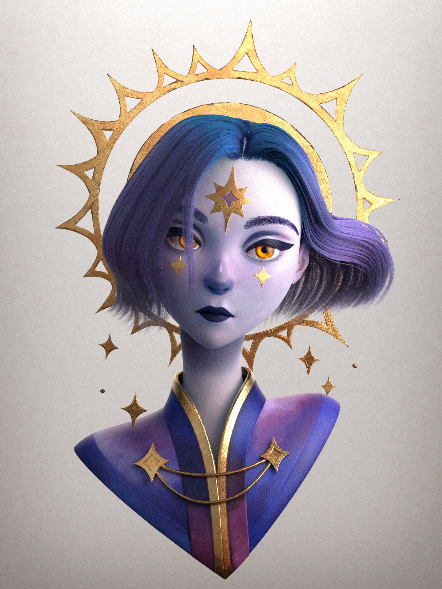 Last summer I came across the instagram of @feefal and was super inspired to model some of her work. Her inked characters are really appealing and I thought that I’d do a set of three females, each would give me a chance to finally learn XGen. This is the first character in that set: Saturn ♄