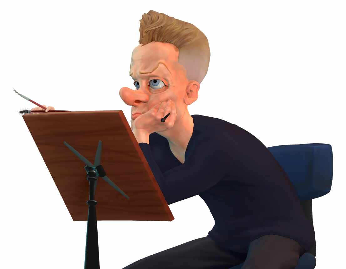This was a quick early trial run of Zbrush. I took a self caricature I had done for a book (Included in this set) and based the model on it.